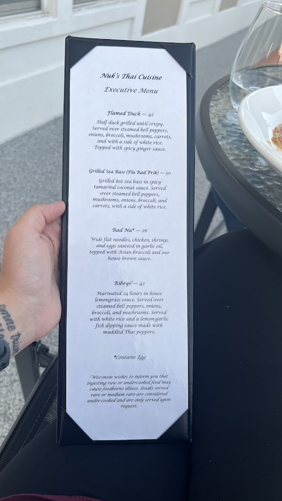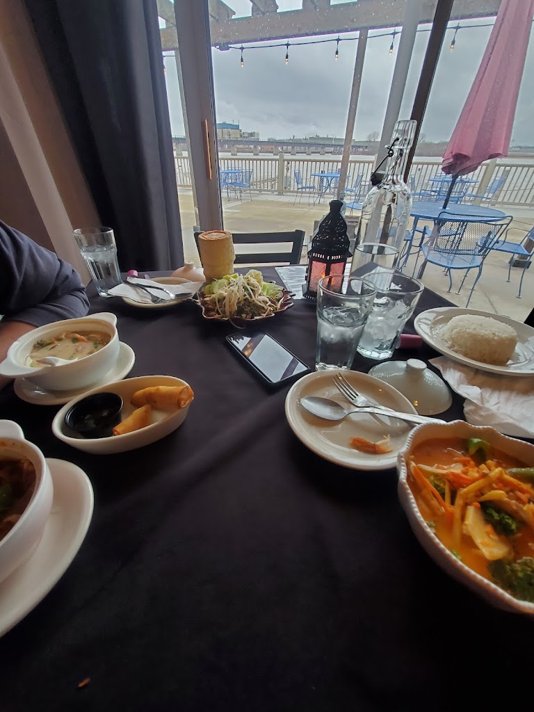 Excellent Thai food served in beautiful atmosphere overlooking the Fox River. Our waitress was helpful and attentive.