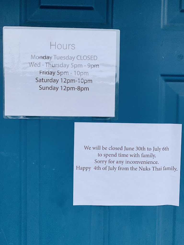 Always a great place. Lots of space so social distancing is possible. Great menu items. I had the Pad Si Ewe and it was delicious. Portions could be a little bigger for the price but overall a nice place to dine.