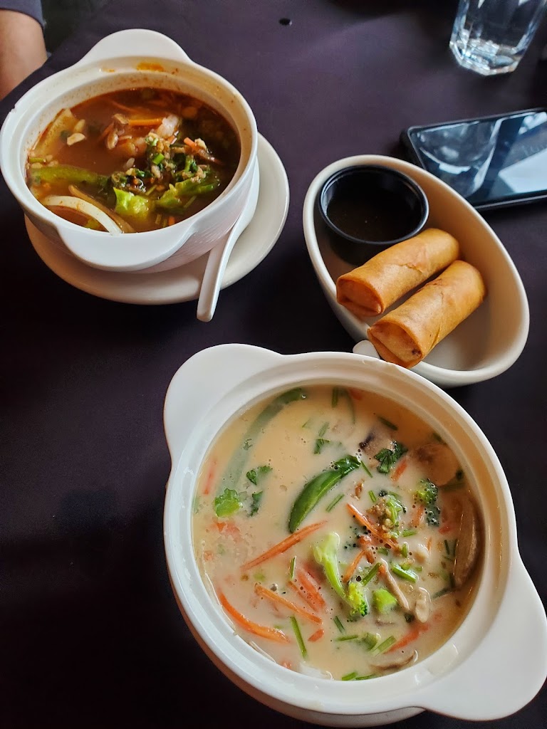 The food, was delicious. I wasnβt fan of the super spicy curry my son ordered (we sampled each others dishes) as I felt that it tasted citrusy and left a weird after taste. The creamy garlic shrimp was what we ordered my daughter. We absolutely loved her dish so much that when we returned the that second time in a week, we all ordered the same thing. The calamari was phenomenal both times! They were huge pieces of squid instead of most places, frying up dinky pieces or small rings. The egg rolls, donβt get me started! Those were soooo good!! I could have made a meal out of the egg rolls alone theyβre simply that good! All around, both times, our experiences were good