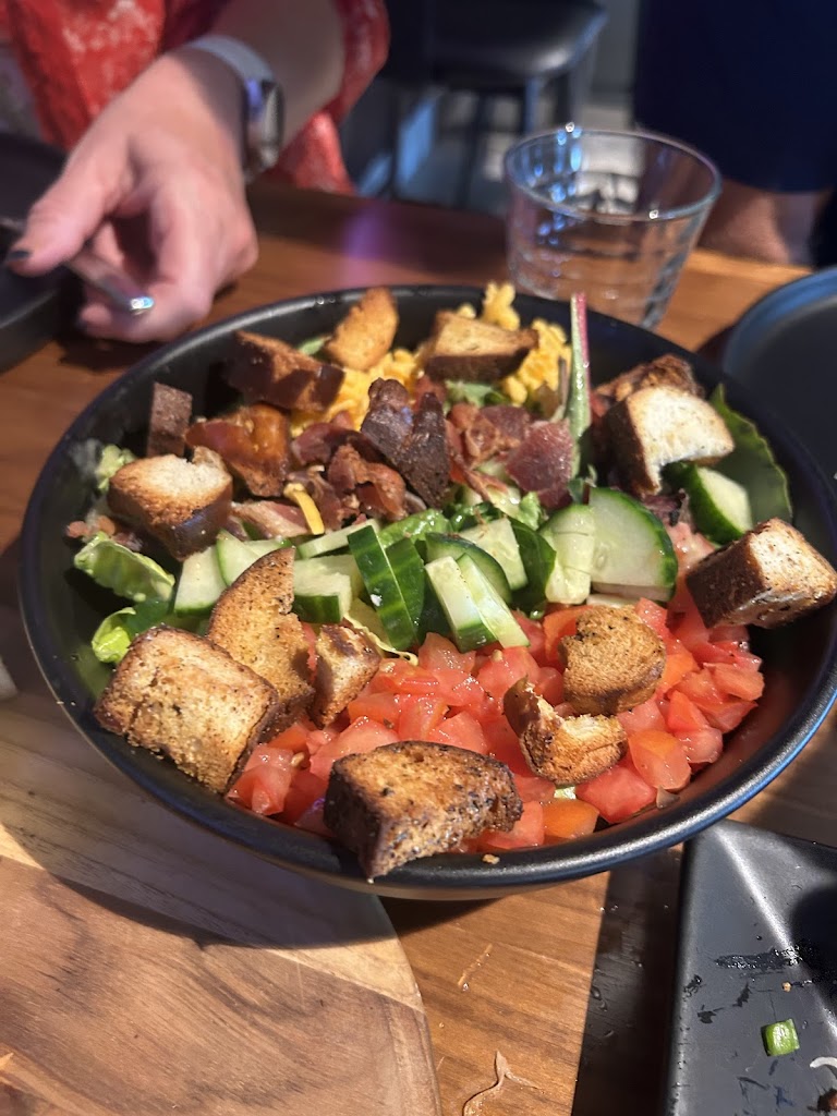 Yay! Finally lots of great food! Husband had Rainbow Trout, I had Weinersnitzle. BOTH were delicious! Crab cake appetizer was one of the Best we've tried! Chunks of crab you can see. Very good! We and all the full parking lots Thank you so much!! Shout out to Emily!