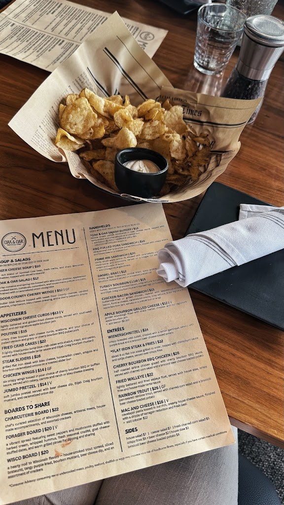 Located directly on the lake at The Geneva Inn, Oak & Oar aims to pay homage to classic Wisconsin dishes in a casual environment. The restaurant showcases the state's rich culinary flavors and traditions through a curation of boards, burgers, sandwiches and entrees alongside a curated selection of wines, bourbons and beer - a taste of Wisconsin’s past, perfected for today.