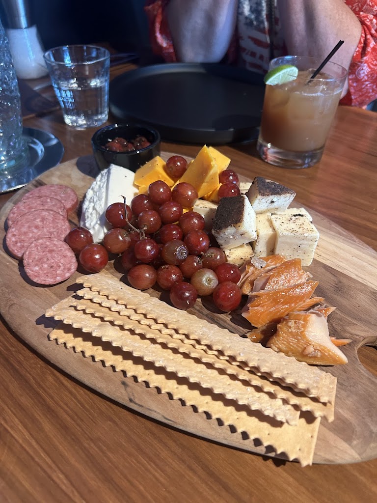 My daughter and I shared a bowl of tomato soup and the charcuterie board. The soup came at room temperature instead of hot. The charcuterie board had plenty of cheese, sausage and fruit but came with only 5 crackers.