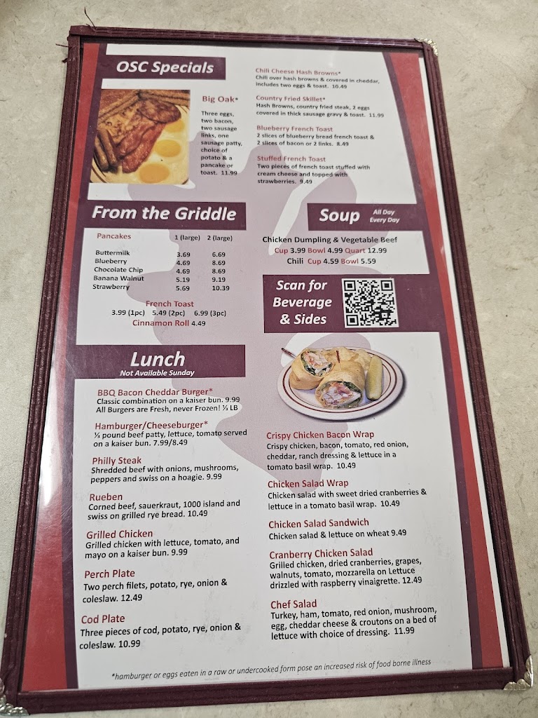 Oak Street Cafe had a very good breakfast. Service was excellent considering the size of our group.
