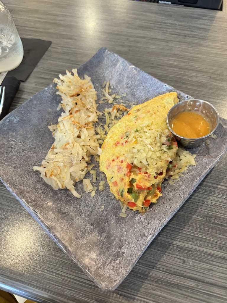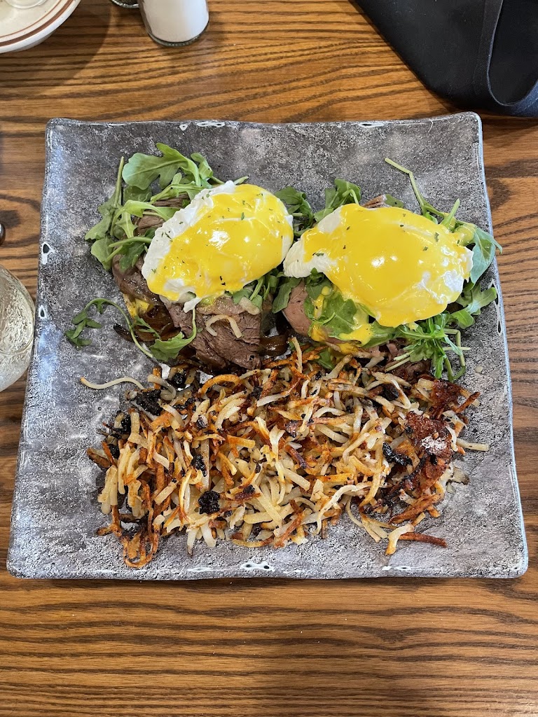 Great atmosphere, friendly staff and very clean! Our breakfast was good but my egg white omelet didn't have a ton of flavor. My breakfast potatoes had awesome flavor but the floppy not crunchy consistency threw me off. My husband got the steak benedicts and said it was good. We shared a side of fresh fruit and we both got a latte. We will definitely go again but our bill was almost $57 and I always tip well so I gave $70 cash. A little steep for breakfast in my opinion but a good back up place for us when the weather is not so great outside because it's close to our house.