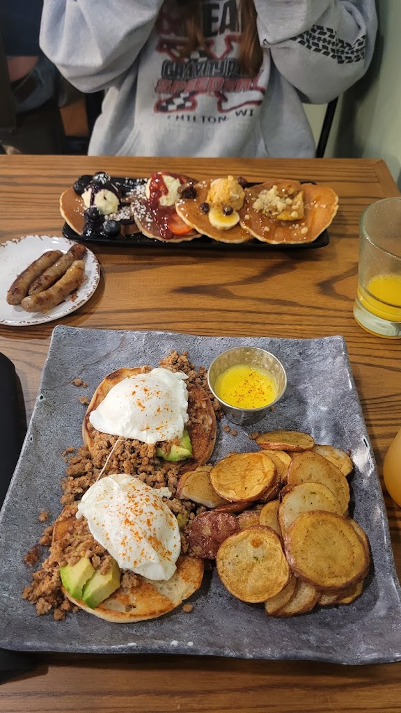 I have to say, what an experience! This meal made my whole weekend. Not only were we greeted by a wonderful host, but the waitress that we had did such an amazing job. It was super busy and our server made sure we were taken care of and treated like their number one guests! The atmosphere this restaurant has brought to De Pere is a fresh new vibe with amazing menu items and a delicious cocktail list. We had the espresso martini made with REAL espresso and the mimosa flight! YUM! The chorizo benny and pancake flight were our favorites! Our son got the Elvis pancakes and finished his plate!