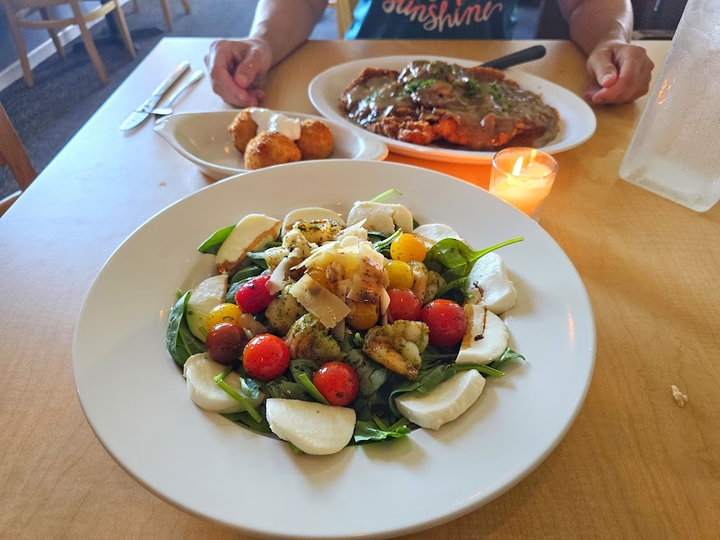 The food ww had was excellent. I had Fiesta chicken, my husband had perch and our friends had fish and chips. All of us agreed the food was tasty and presented well. The reasons it's a 4 srar is that 1) at first they couldn't find our reservation and she seemed to believe we didn't have one, and 2) I ordered an entrée that came with soup and salad. I told her I didn't want the soup, but ordered a salad. I didn't get it until after our food arrived and I asked about it. They were busy, but that is not something that should happen.