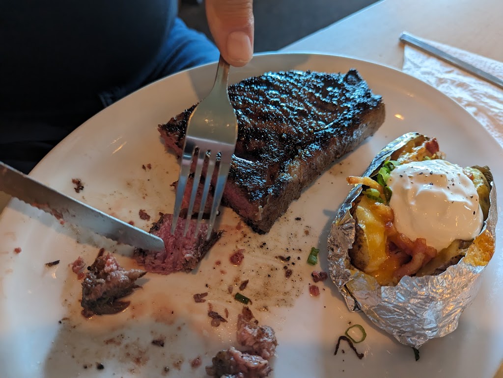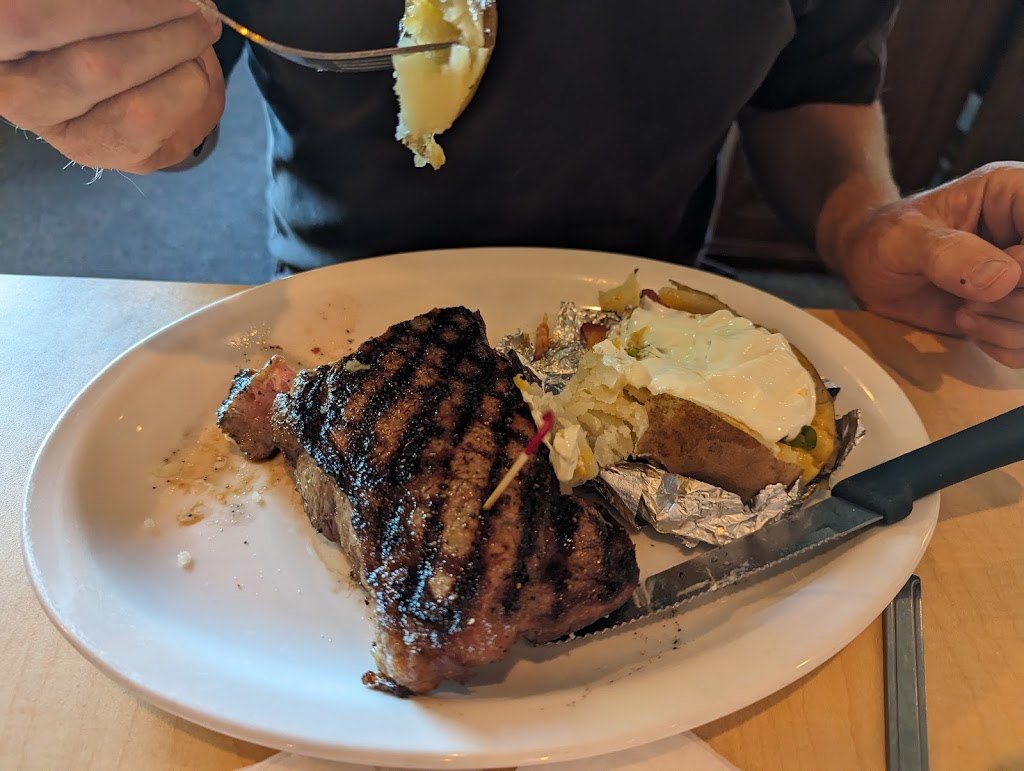Bloody Mary was amazing, prime rib was Soo good, it had a great flavor and texture. The clam chowder was ok, the soup was so rich it took away from the clam tastes. The New York strip really needed to be marinated because of how thick it was, seemed like they were depending on the topping to help with the overall flavor, but the steak was just too thick.