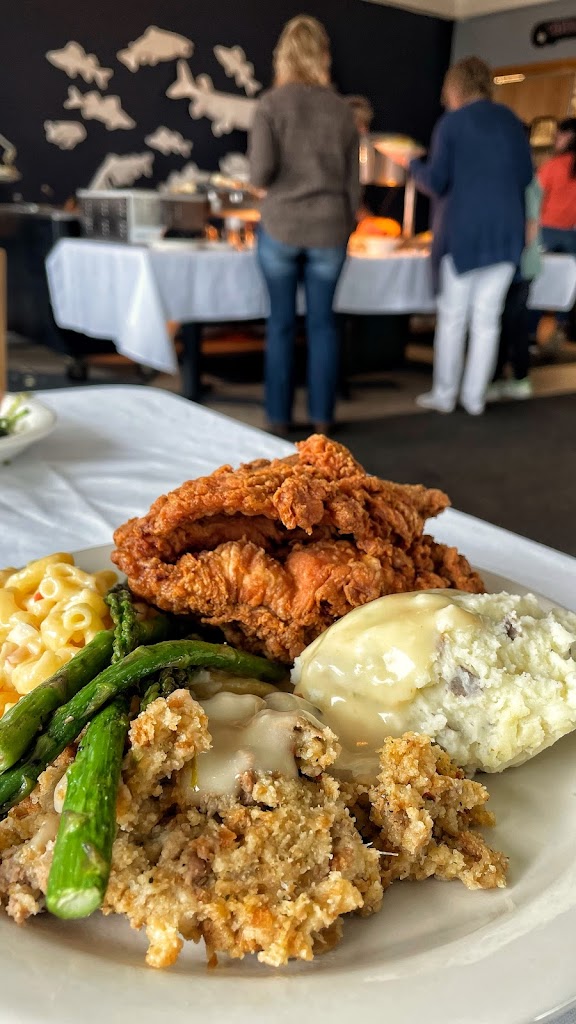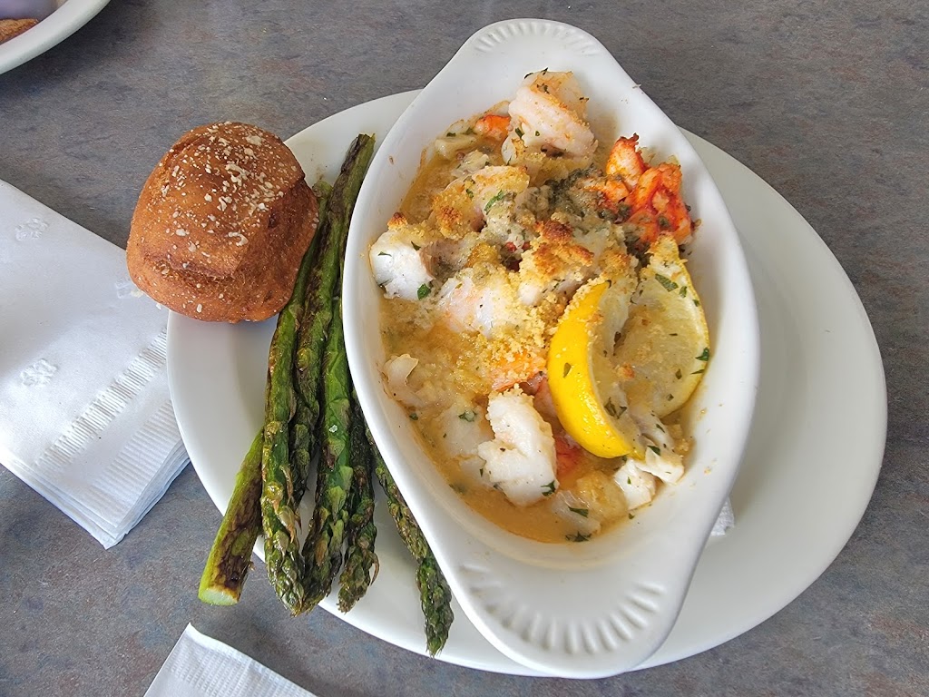 What a find for me! My friend and I found the food just excellent! And I mean excellent! I ordered cod with seafood blend over it, and not only was it delicious, there was a good variety of seafood and lots of it! My friend ordered Shrimp Mac n' cheese, and it was also deemed excellent. I spoke to 2 men leaving as we entered as to what they would recommend. They said, "Everything is excellent." they were enthusiastic as they shared what they ordered and how good it was! ( Cuban sandwich?) Service was casual but sincere. ( A young man who later apologized for removing his flannel shirt covering as if it was a sport coat or uniform !😅 probably was !) Lake Side decor with a unique row of very old church pews as seating down the middle of the restaurant. Very good Old Fashioned drinks. We were there around 7:30 p.m. on a Thursday, so no problem getting a table and service. Otherwise a reservation may be necessary. I don't believe anyone will be disappointed. Located on the west side of the Bay of Green Bay. I only wish I was closer!! Oh...also wonderful sweet potato fries !!👍