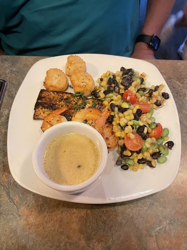 I enjoyed the NY strip, grilled shrimp, asparagus and garlic mashed potatoes. Amazing! We also had cheese curds and chili for apps. Wonderful date night!