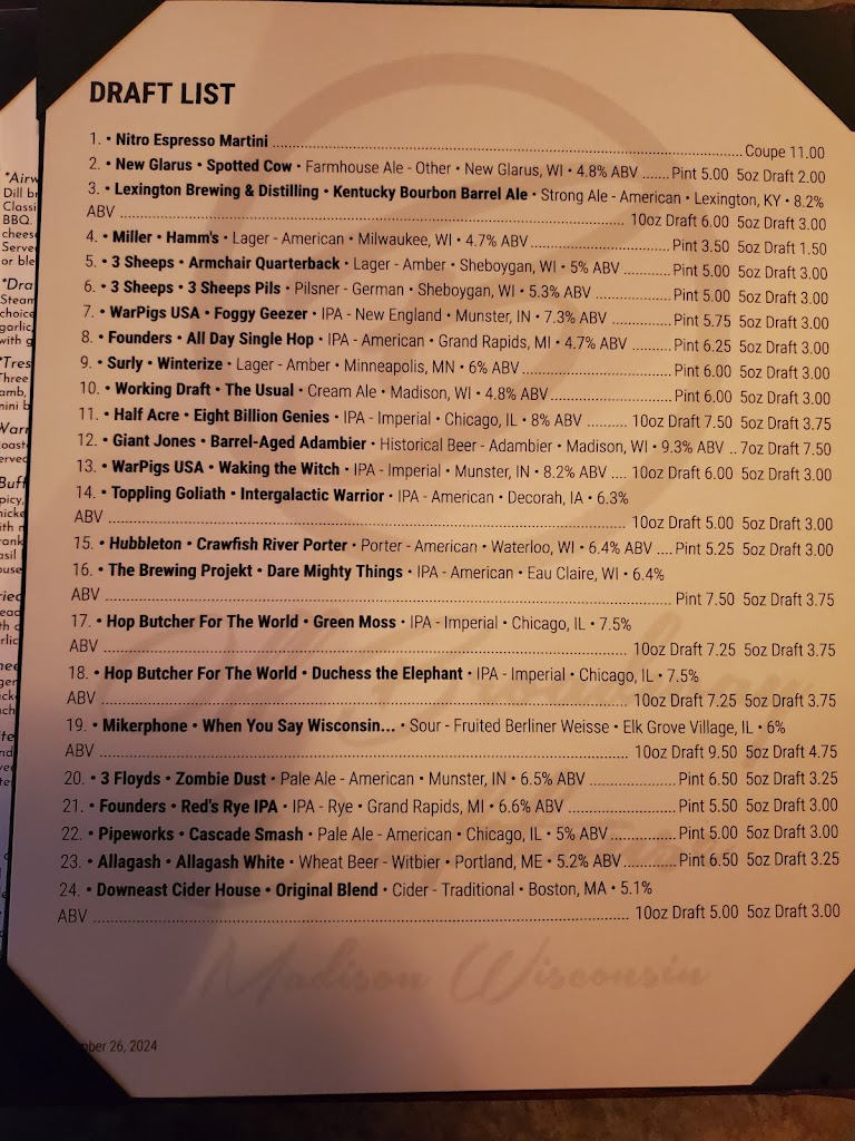 This is one of my favorite places in Monona. The food is outstanding and always consistent. Great beer selection, cocktails and cocktails.