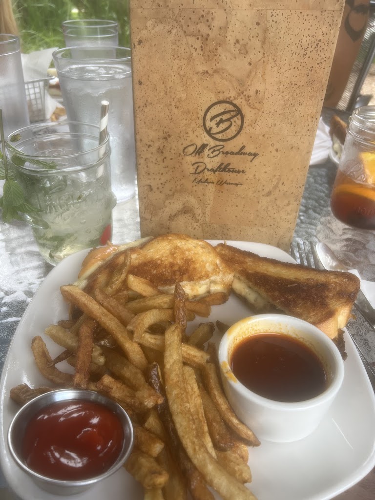 While in Madison for an event we stumbled upon this amazing little eatery! The atmosphere is very warm and inviting, the service was top notch and the food was absolutely amazing! Locally raised grass fed beef was a big deal for us, so seeing that on the menu reassured me that we had made a good choice stopping to eat here. The waitress made an appetizer suggestion of the goat cheese, when she said she doesn't usually like goat cheese, but loves this, that caught my attention, because I don't like it either, so of course we had to order it. She was sooo right, it was absolutely delightful, I will order this every time I come! This visit I had their version of the patty melt and a salad and it was all very good. That day they had a chocolate peppermint cheesecake on the menu, and since cheesecake is my weakness, I of course had to try that too. It was very good and obviously homemade. It had layers of chocolate cake between the peppermint cheesecake layers and it was truly divine. Definitely enough for 2 people to share! Later that evening we actually ended up going back for dinner with some friends and this time I tried the battered chicken thighs which are butterflied and boneless. They were the best chicken thighs I've ever had, the breading was perfect and the meat was of good quality. I had the loaded mashed potatoes on the side, and those were very flavorful and well made as well. We live about 2 hours away, but I've told many people about this place and will definitely go back again when we are in the area! I highly recommend Off Broadway Drafthouse ♡