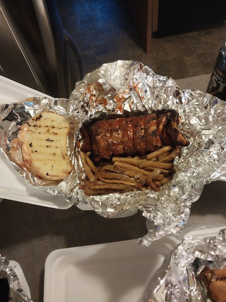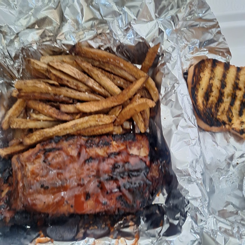 The fries are not from here. They are homemade; we ordered extra ribs since they are closed July 1-5th, 2023. 🤭 #PlanAhead #GreatFood
