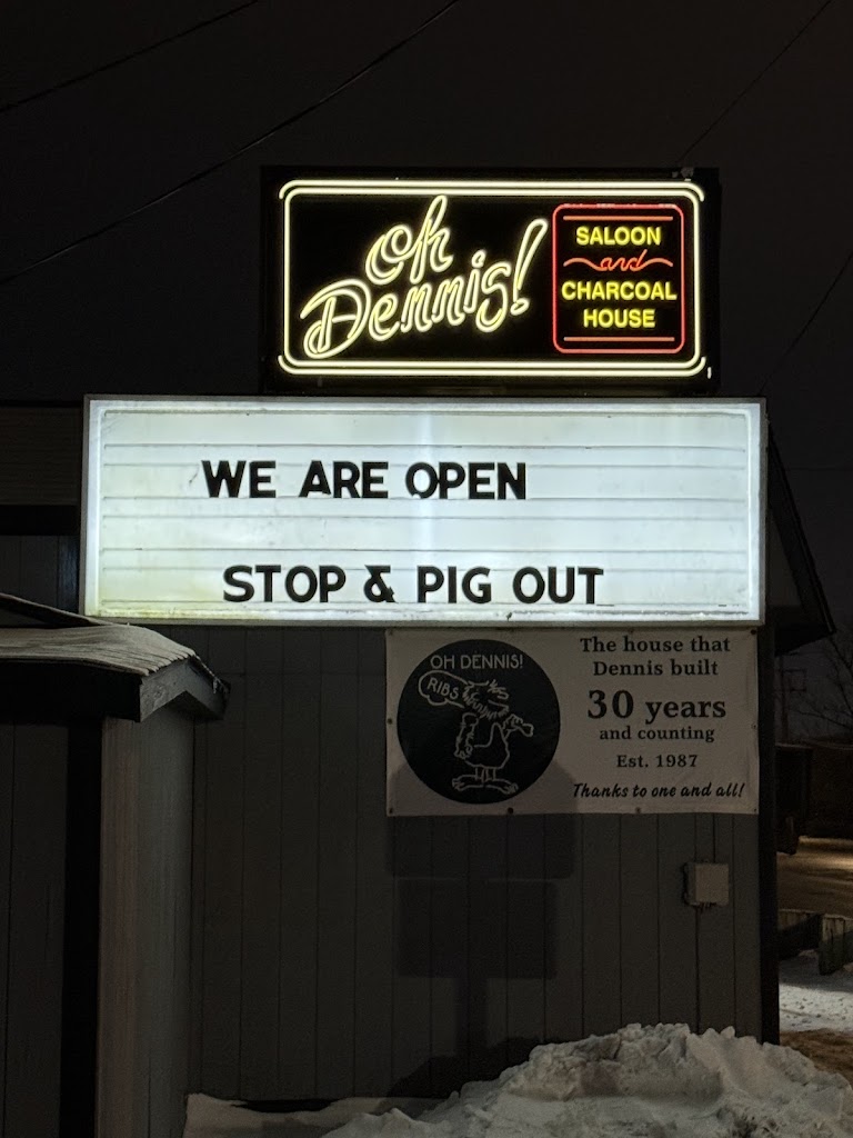 Oh Dennis! is a great place to eat. The best ribs in the world! We went tonight and my wife had the full rack of ribs… and I tried the Fish Fry. Everything was delicious! Huge portions! The service is helpful, friendly, and fast. I can’t wait to go back again! Highly recommended!!!