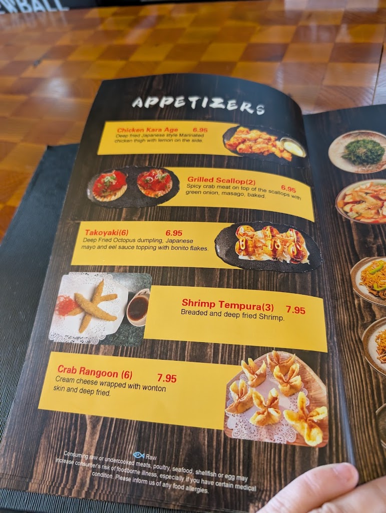 Went there for my grandsons birthday. Atmosphere was great. Had 2 different appetizers. Both were very good. I had the shrimp stir fry ramen. Very flavorful. Staff was very friendly. Would go there again.