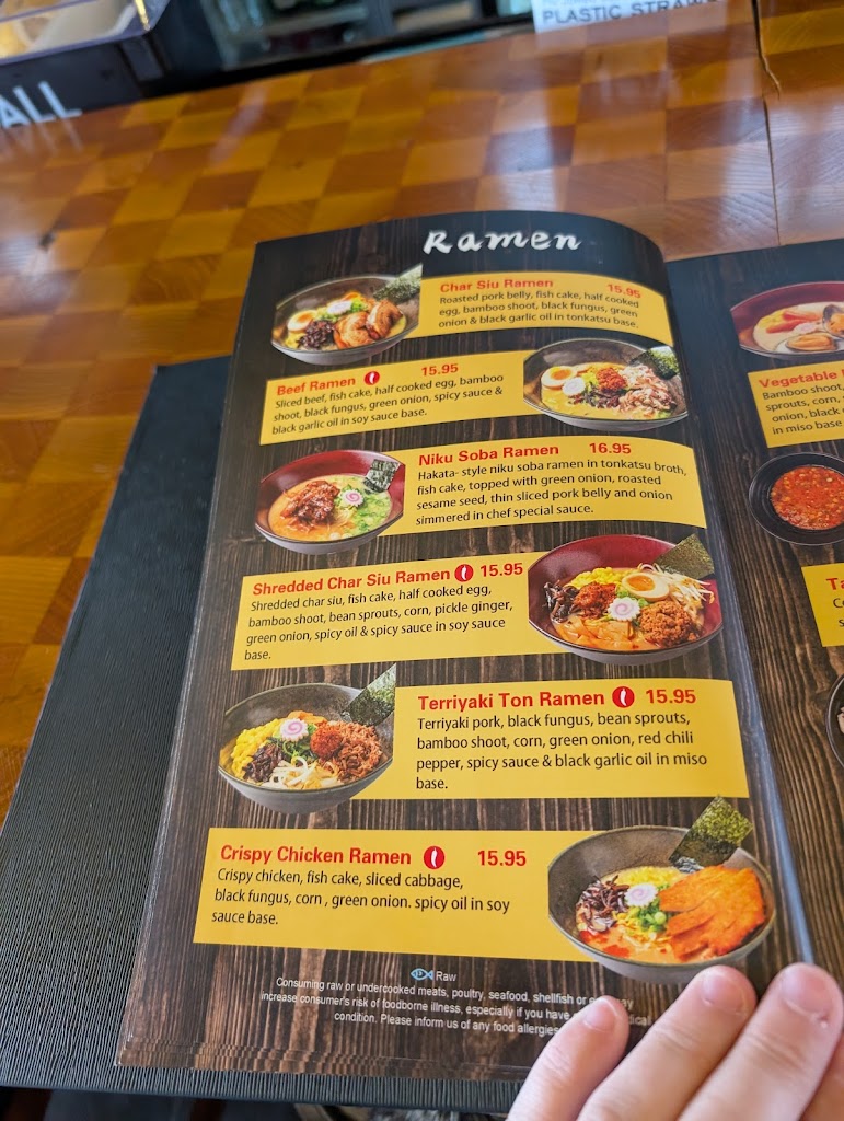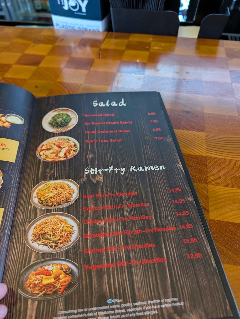 Got kimchi ramen, broth was good but the noodles tasted plain. The noodles didn't capture/hold any flavors.
