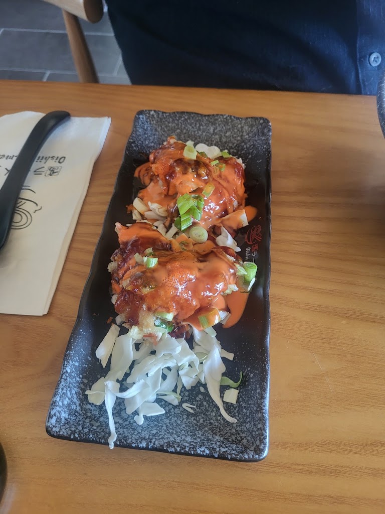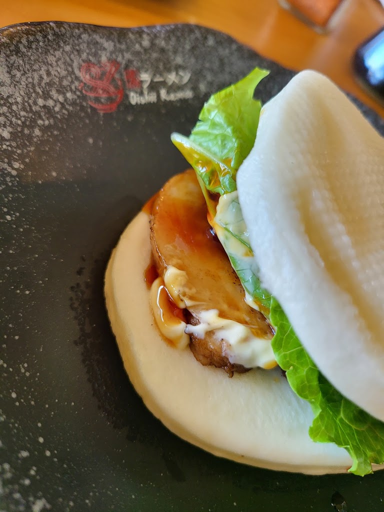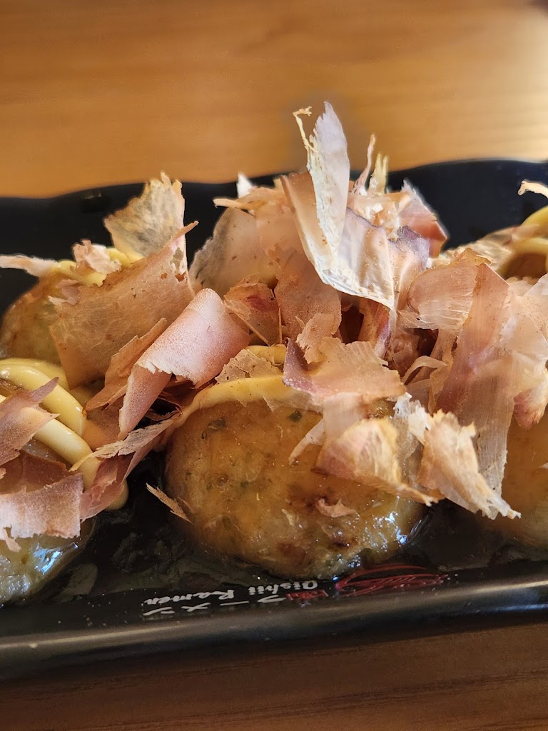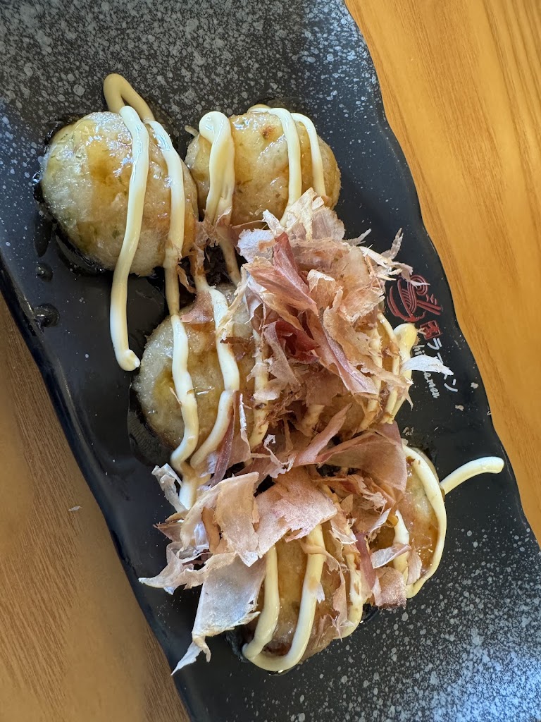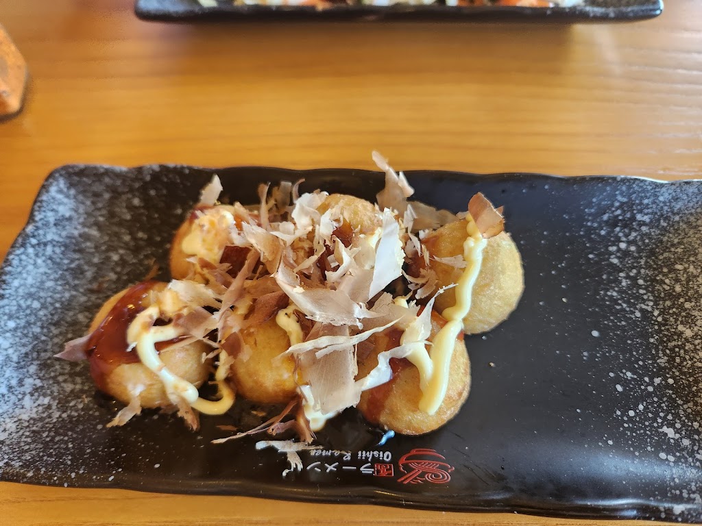 Food: Wish the pork bun meat was softer. Takoyaki was cut in half, and wished they were crispier. Ramen broth was good.