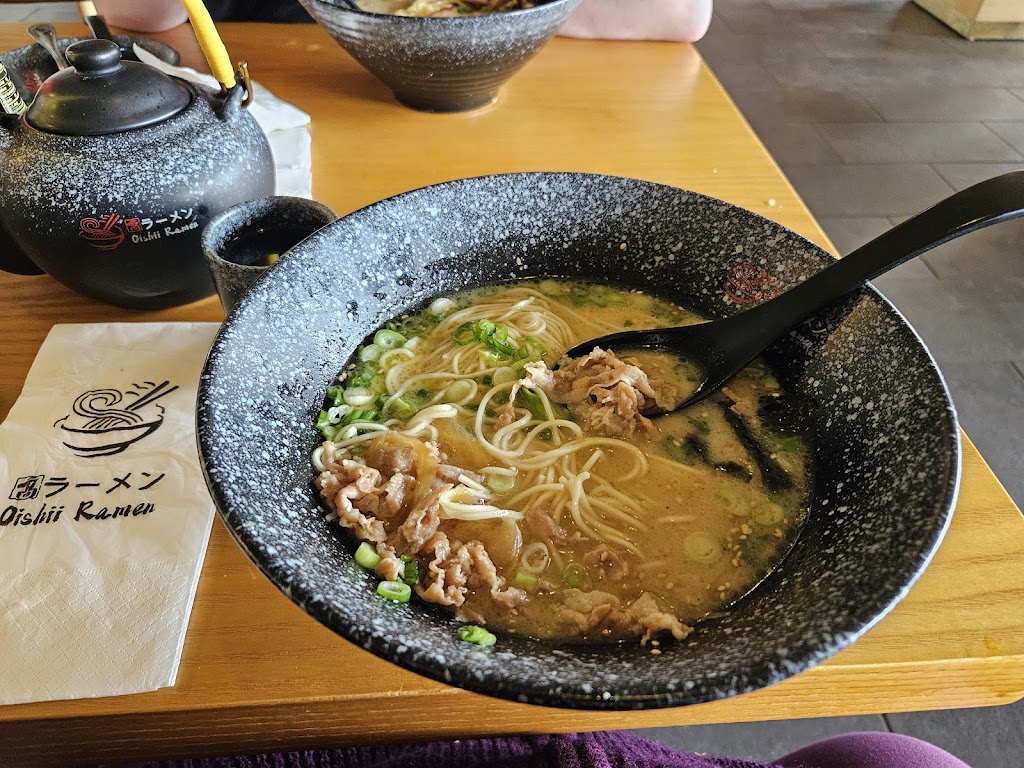 This is the best Ramen I've tasted in the states since I visited Japan. I visited Japan back in February of 2025 and I have to say, Oishii Ramen actually tastes better than some of the ramen bowls I've had over seas. The broth is flavorful, they weren't stingy with the chashu, and the toppings was on point. Although, I think they can improve on the boiled eggs. You'll know if you have been to Japan. I would categorized the overall portion of the ramen dish as average. And I wish the price was below $15 a bowl. But it's wishful thinking in this economy. All and all, I'd give it a 4/5, would recommend.