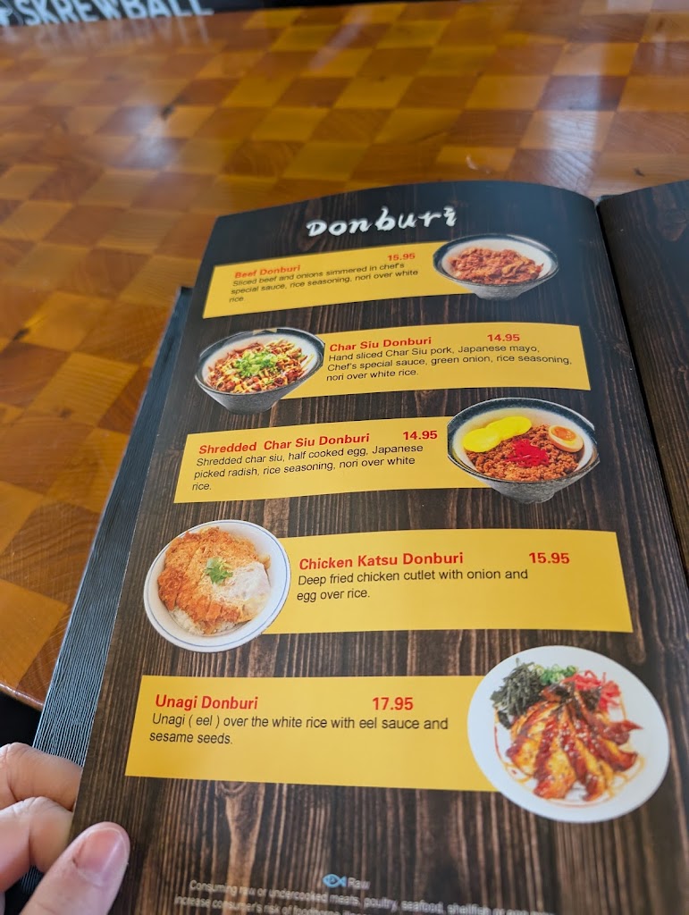 The food was amazing. Donburi is 100% my new favorite meal. We tried the Char Siu Donburi, Nika Soba Ramen, Takoyaki, Beef Fried Rice, and Crab Rangoon. Everything was perfectly done and packed with flavor. We will for sure be returning.