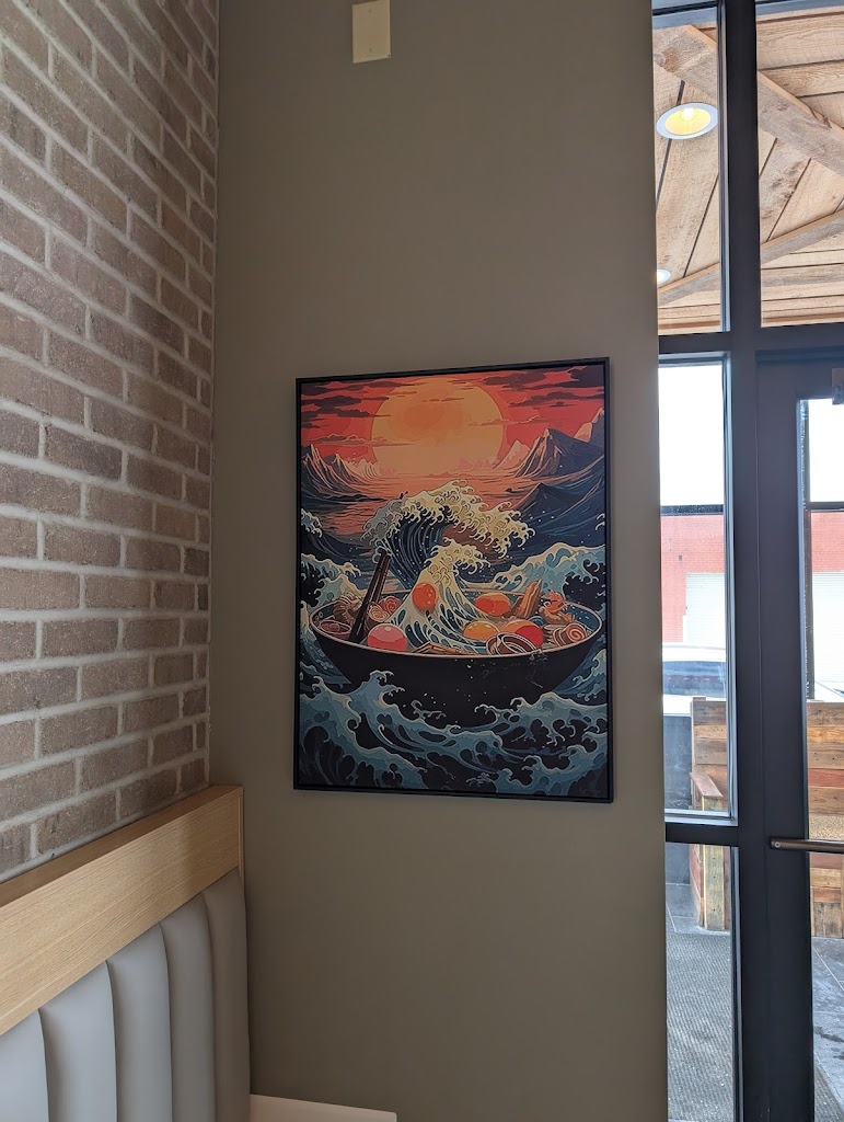 The atmosphere was very welcoming and cozy. The decor was great with classical looking Japanese paintings featuring ramen dishes.