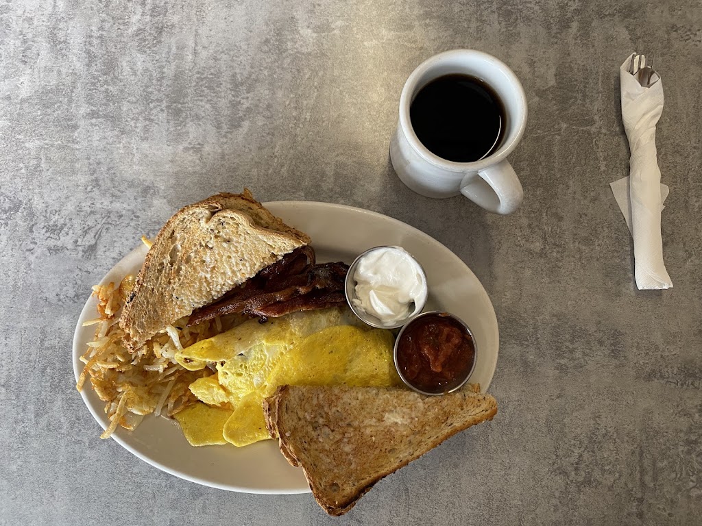 Very pleased with the service and meal I received today. I ordered the western omelette with hash browns, it also comes with toast. I added a side of bacon. 🥓. The omelette was very good, I’d highly recommend them. The hash browns were cooked nicely, and I ask for mine to very crispy, which they were. The back was very good as well. Nice atmosphere, like a classic family style restaurant with an “up north” feel. I’d definitely recommend stopping in.