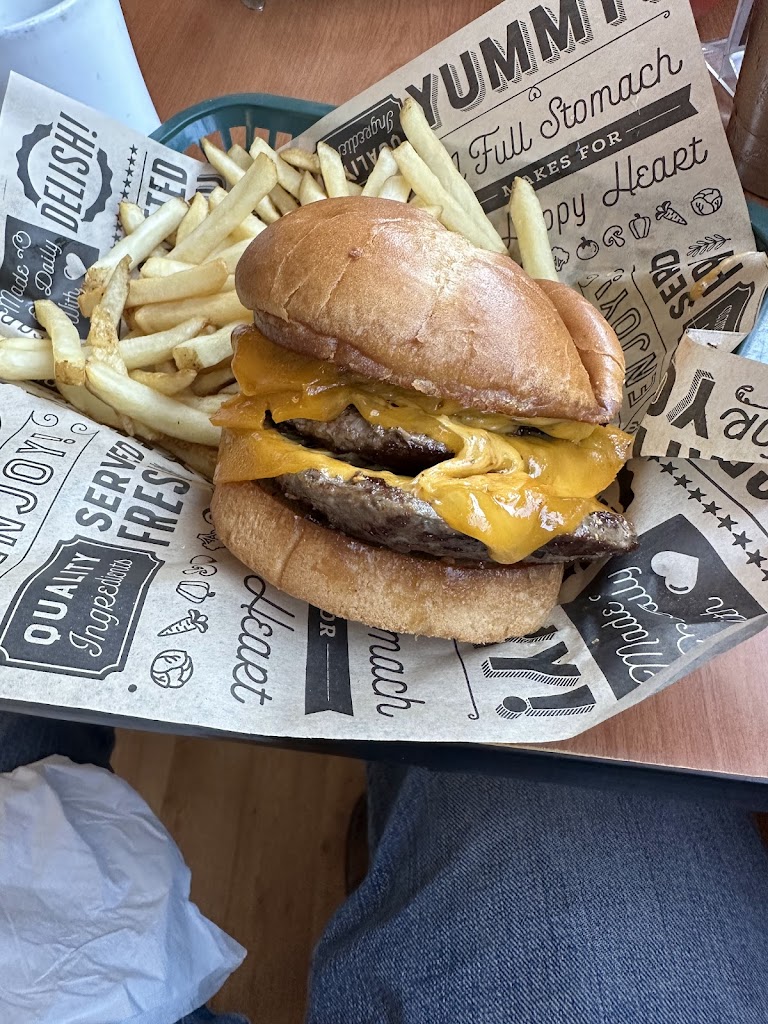 Pretty good cheese curds. Cheeseburger was kind of overcooked and dry. Bun was also a little burnt. Fries were hot and also pretty good.
