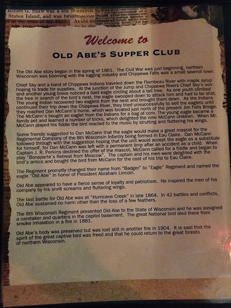 I also highly suggest a pre and post old-fashioned, long as you have a DD. Especially those non-native Wisconsinites! They'll add to an already enjoyable night at Old Abe's Supper Club.