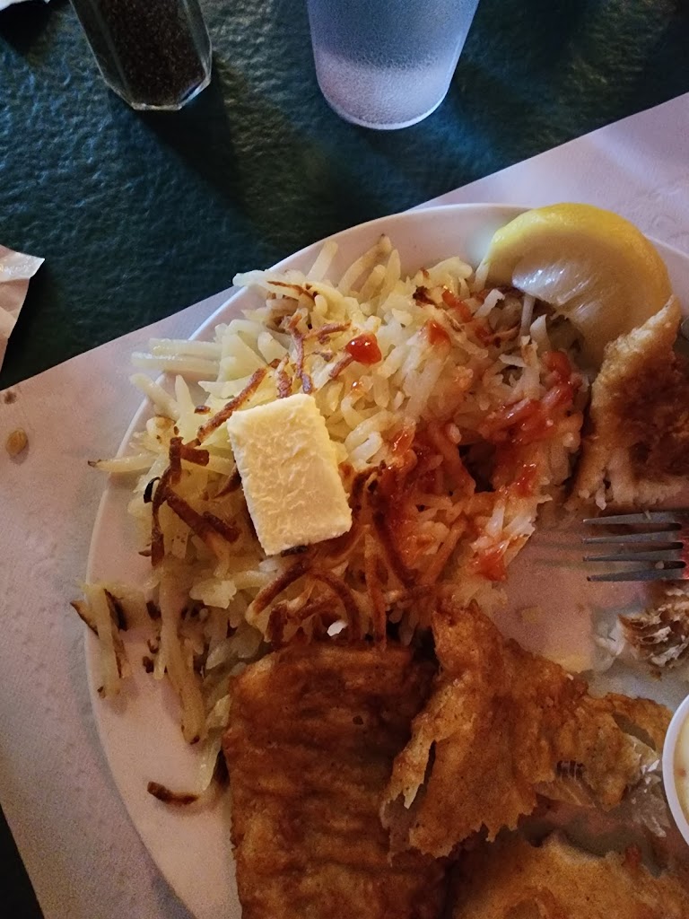 It's been years since we were here due to having young kids. Had to wait 30 mins so should be good. Service was alright when we saw her but had to go find someone to get our bill. Kids food portions are the same size if not bigger then the adults which was crazy. I had fried cod that once you bit into it you had to wait for the water to drain out. That came with 2 pieces of fish. My wife had the broiled cod. I should has asked where the rest of her food was. She received 1 piece of fish. My wife doesn't normally finish a meal completely due to being full. Her plate was wiped clean and still hungry. I ended up going back for seconds at salad bar due to needing more food. One child corn dog had to peel the batter off as that was hard and burnt. Other kids cheese burger was so so according to him. I overheard another table ask a waitress if the food portions have gotten smaller because they didn't have much fish also.