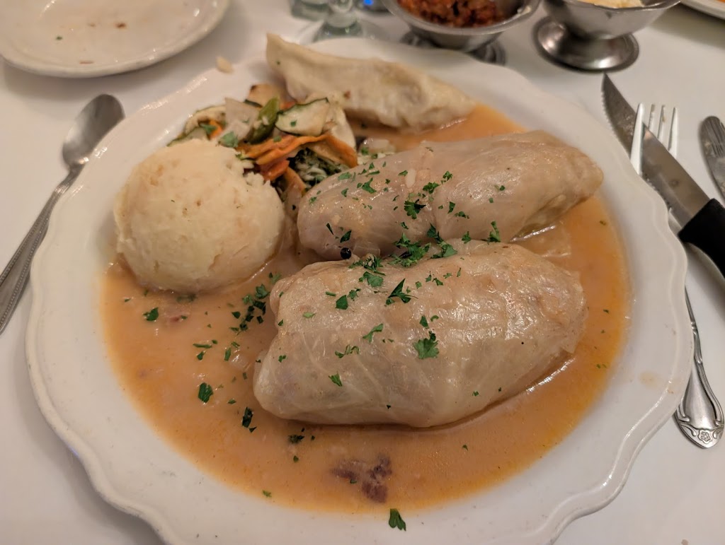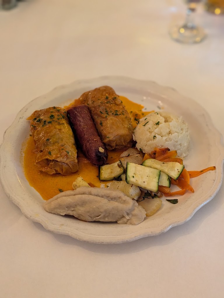 Great nostalgic atmosphere. Ample portions of the entrees. Tried Burek (spinach and cheese) and goulash. Delightful house wine. Parking okay