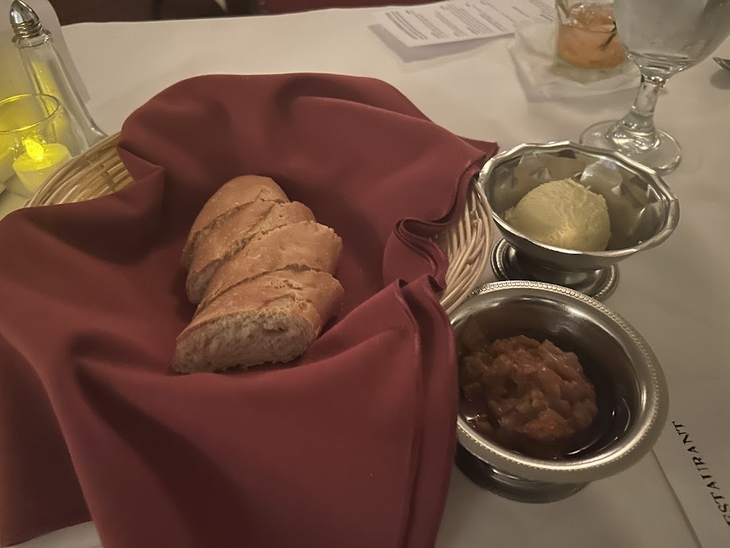 Three different meals plus a salad appetizer, everything was outstanding! 3 Serbian Chardonnays and a white Zinfandel, all were excellent. The hot bread was over the top.