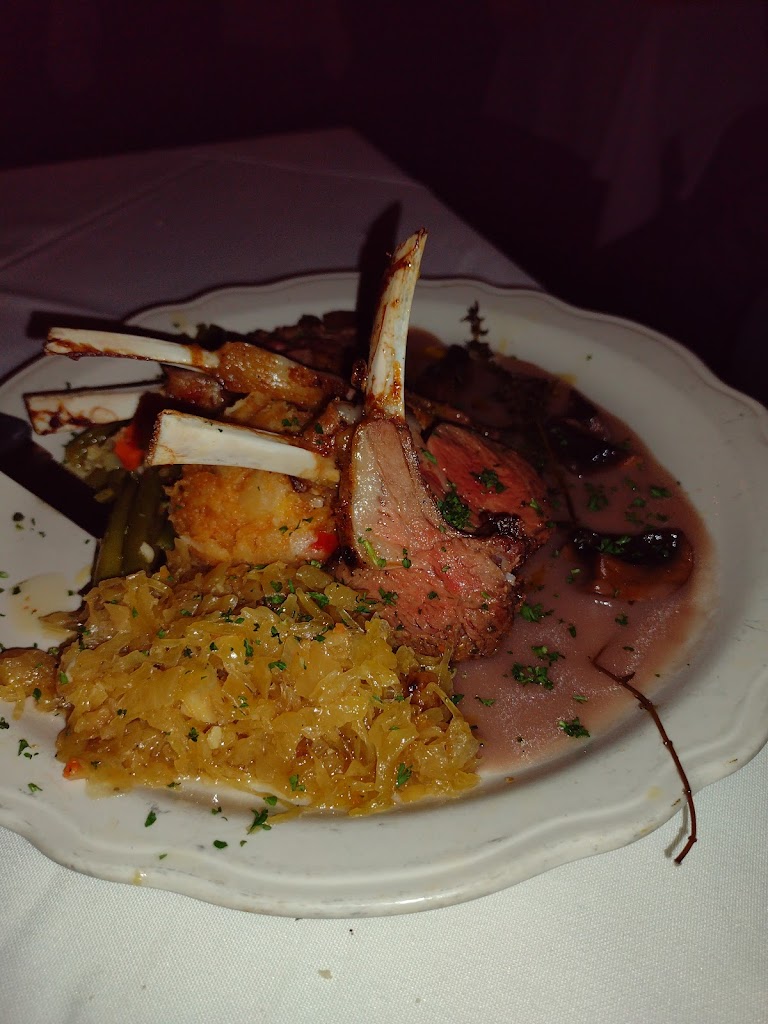 So as I write this review I feel embarrassed that it has taken me so long to visit this restaurant that has been in business for as long as I can remember. That being said, the meal at this establishment was one that I will remember for a long time. It also encourages me to return as soon as I can. Our visit began at the bar for our usual pre-dinner cocktails. My wife wanted me to make sure I mentioned the Serbian Old Fashioneds she enjoyed on our visit. She said they we were delicious. Our meal started with bread fresh out of the oven accompanied by 2 delicious homemade spreads. A creamy cheese spread and an eggplant and what seemed to be tomato spread. Both had amazing flavor and tasted great on the crusty bread. For starters we chose the Tomato and Roasted Red Pepper salad. Sprinkled with a soft cheese and topped with a light vinaigrette the salad, like the bread course was full of flavor. Our other starter was the Serbian Escargot. A generous portion of snails( like 12!!)in an incredible garlicky herbed butter. Some of the best escargot we’ve ever had. Grilled bread was served on the side and was used to sop up every last bit of the butter sauce. Both of our starters could have easily served 3 to 4 people. For entrees I chose the Raznjici/Chevapchichi combo off the Grill section of the menu. This is a combination of perfectly grilled pork tenderloin chunks and Serbian sausages both with great grill flavor well seasoned and juicy. On the side were diced raw onions, and feta cheese along with perfectly grilled medley of vegetables and some of if not theee best mashed potatoes I’ve ever had in a restaurant. Needless to say my plate was licked clean when I was done. My wife chose The Braised Spring Lamb which turned out to be a very large Lamb Shank. Fork tender and melt in your mouth. The lamb was well seasoned and perfectly cooked. It was joined by red and green braised cabbage, the fore mentioned mashed potatoes, a dumpling, rice, and mixed vegetables. A very large portion indeed. Except for the the dumpling which sadly was very plain and lacking flavor the entire dish was bursting with amazing flavors. We did not try dessert although there were several options to choose from. Service was friendly, professional, and well paced. Bathrooms were small but very clean. Parking was available behind the restaurant. Prices were very reasonable for the quality and quantity of food. Sadly my wife and I were 2 of only 13 people in the entire restaurant the whole night. This is a gem of a restaurant and more people should give them a visit when looking for some amazing ethnic food. Give them a try Milwaukee!!