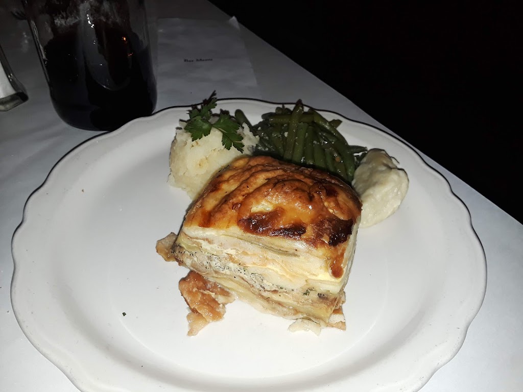 Just had a delightful meal with Burek and Mousaka for our entrees. Delicious! The burek is made with phyllo and made fresh. The Mousaka is an eggplant, beef and custard dish. Creamy! Our waiter, Bojan, was new but did an outsanding job. I tried the pumpkin apple soup and we shared the Serbian appetizer plate. The Serbian potato salad is a must. The owner didn't rush us and we enjoyed our evening so very much, finishing it off with Serbian coffee We love the old world atmosphere. We hope to be back often.