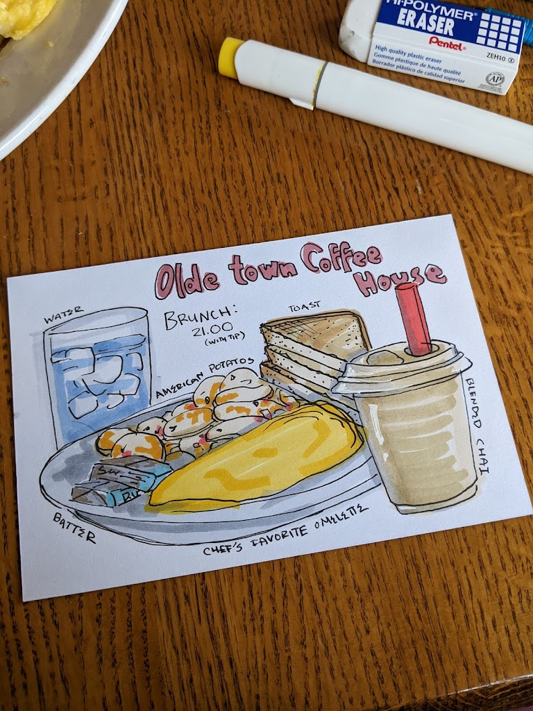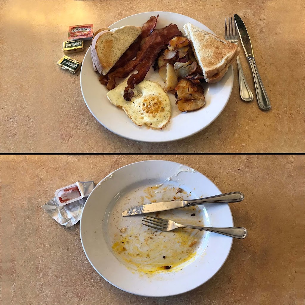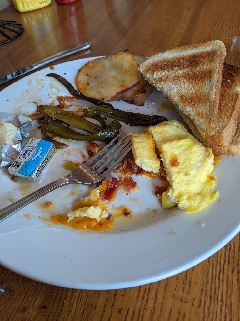 Step back in with a coworker for another wonderful food experience. Coffee never stops. Just have to walk up and fill your cup. Had the Denver omelette with sourdough and potatoes. Very good. I believe you get a good portion for your money.