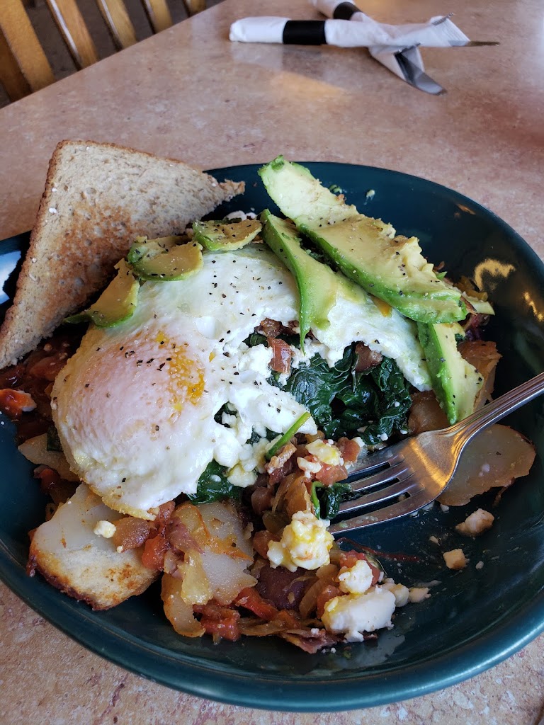 A lovely diner with the absolute best breakfast potatoes - sweet red skin potatoes with paprika and peppers. They make a decent mocha, too. Good selection of omelettes, skillets, and great biscuits and gravy! Gets very busy on weekend mornings with tight parking. Can get loud inside, but outside seating is available. Free WiFi!