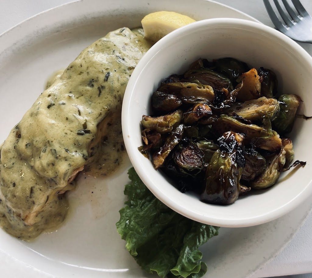 1st visit with the new ownership. My wife and I ate outdoors and were met with a cheerful Tara (our server) We peeked inside and the nautical theme looks intact which I believe gives it a nice charm as no other restaurant in the area compares. Regarding the food, we were served a good portion of sliced bread with oil and shredded Parmesan cheese. Tasty 😋 I had the chicken pesto while my wife had the baked cod poor man's style. For the side, I had the fettuccine alfredo which was excellent and my wife had the vegetable of the day, brussel sprouts. A side salad came with the meal and they make several dressings themselves. The flavor of the food was great and the portions generous. We both felt that the price was an excellent value. We'll definitely return to try other things on the menu and encourage others to give them a try.