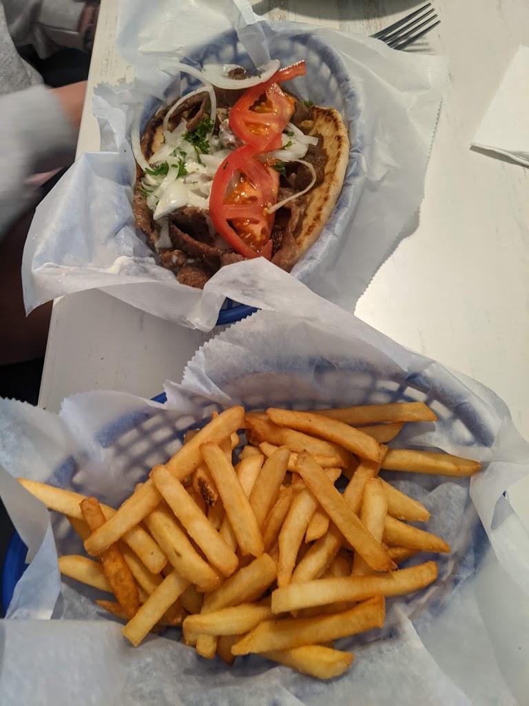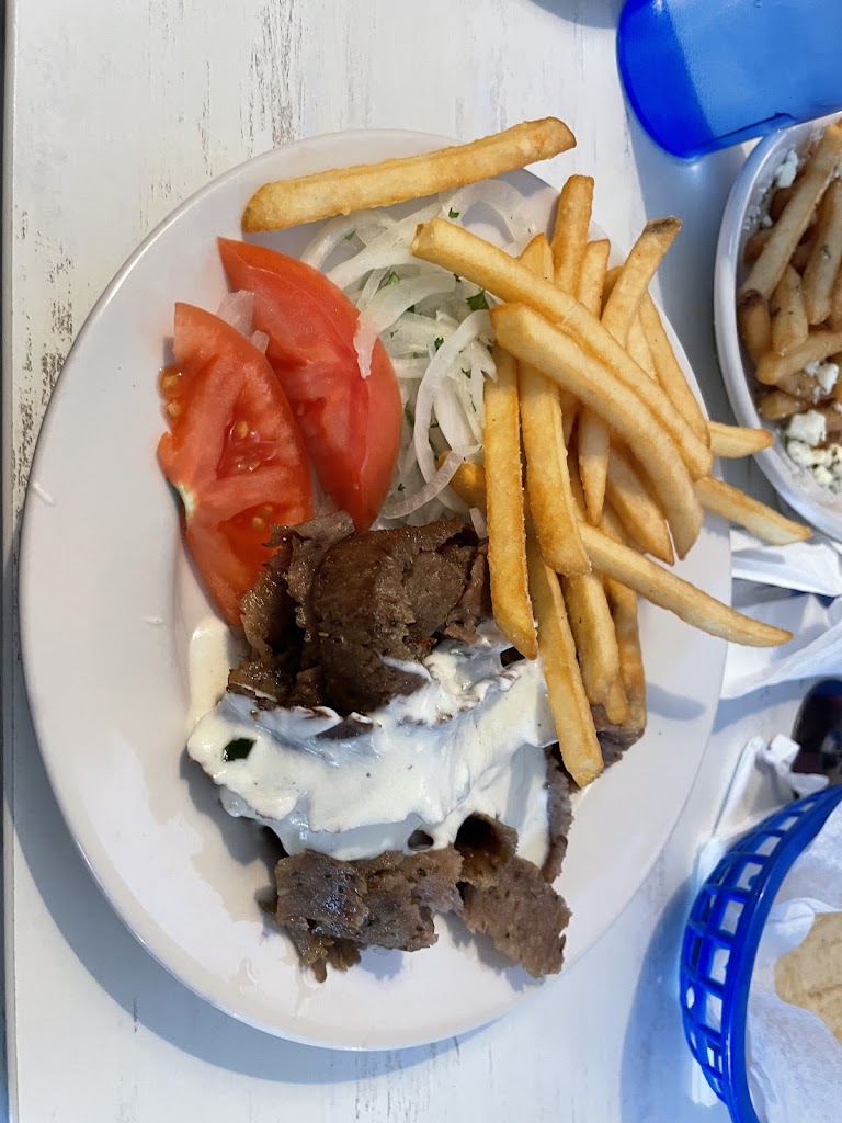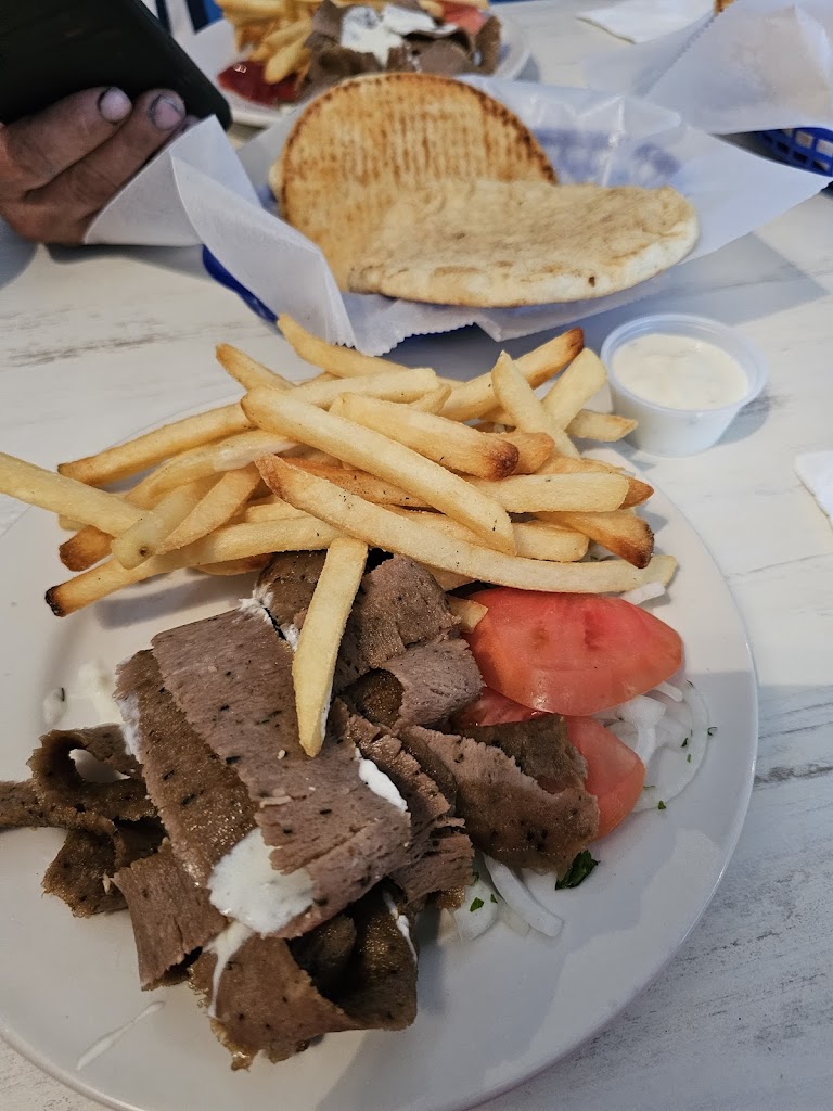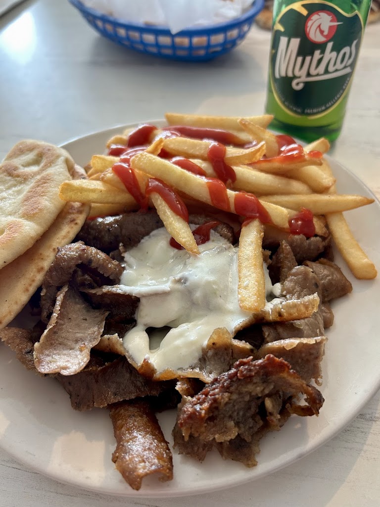 Pictured is the gyro dinner with fries and Greek beer, really hit the spot. Opa!