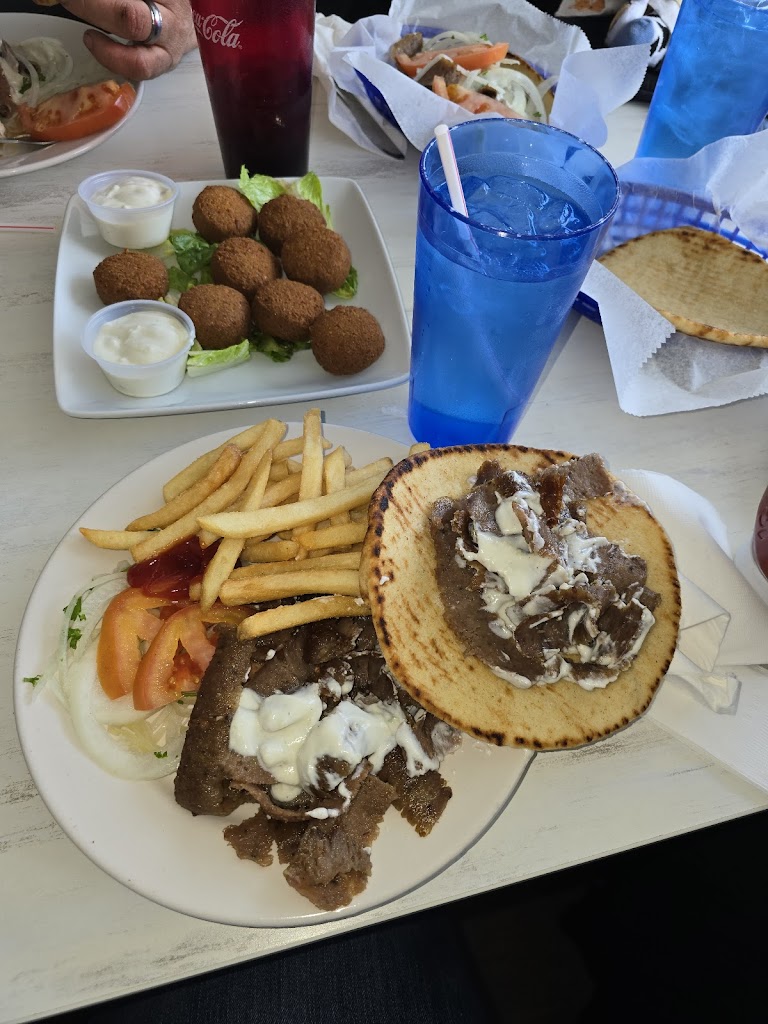 Gyros or flavorful lamb is hard to come by to say the least in my opinion. I am from Chicago so I have had some great Gyros in my lifetime… with that said, the bar is so high in my mind when it comes to having a gyro especially that season slight greasy flavorful type of gyro. Here, although the food (gyro) plate I had was real lamb it still miss the bar of having flavor. My meal was bland but the fries did make up for a lil bit of the miss flavor yet the gyro in no way satisfied my taste buds. We also had the Greek Salad which was very very basic and lacked pizzazz. Our service was average and the atmosphere was soothing. If you seeking to just quench your thirst for lamb this place will do but if you looking for flavor and great taste this is not place.