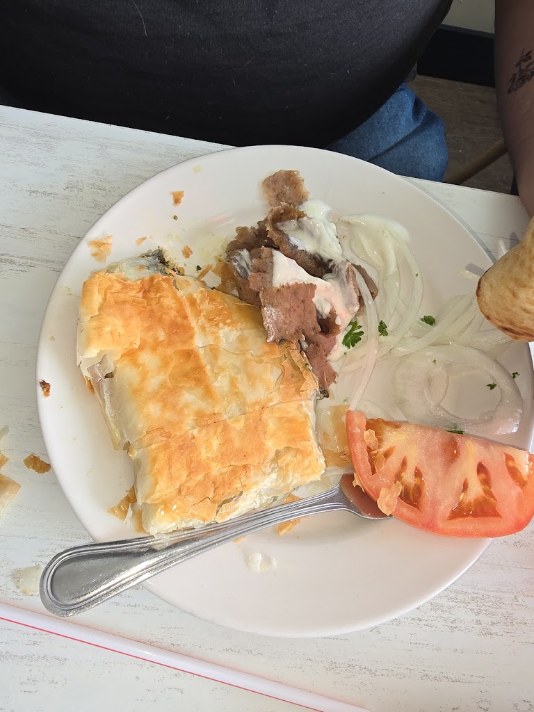 I had a combo plate with a spinach pie and a small gyro. Absolutely delicious! The restaurant is newly updated and has a pleasant atmosphere. It's a great place to have a quiet conversation. I will return soon.