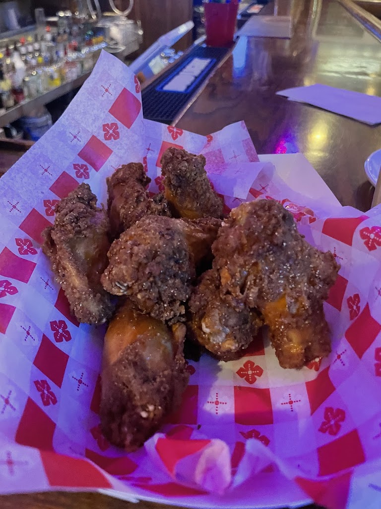 It's like stepping into the '90s. The bar is nicer than I expected. The wings are breaded which wasn't my favorite but the flavors were good. See Sam on Monday nights!