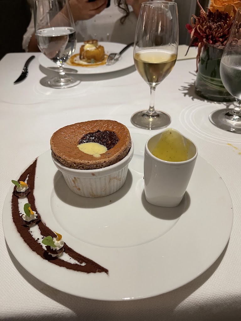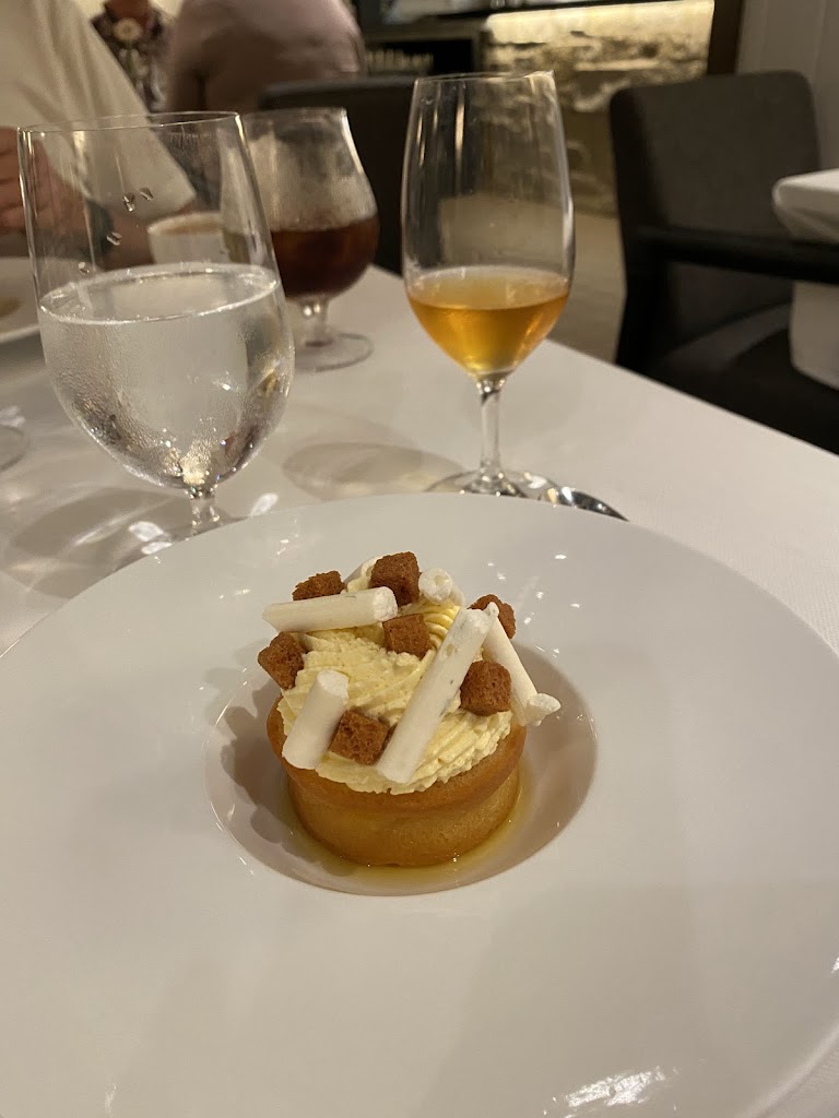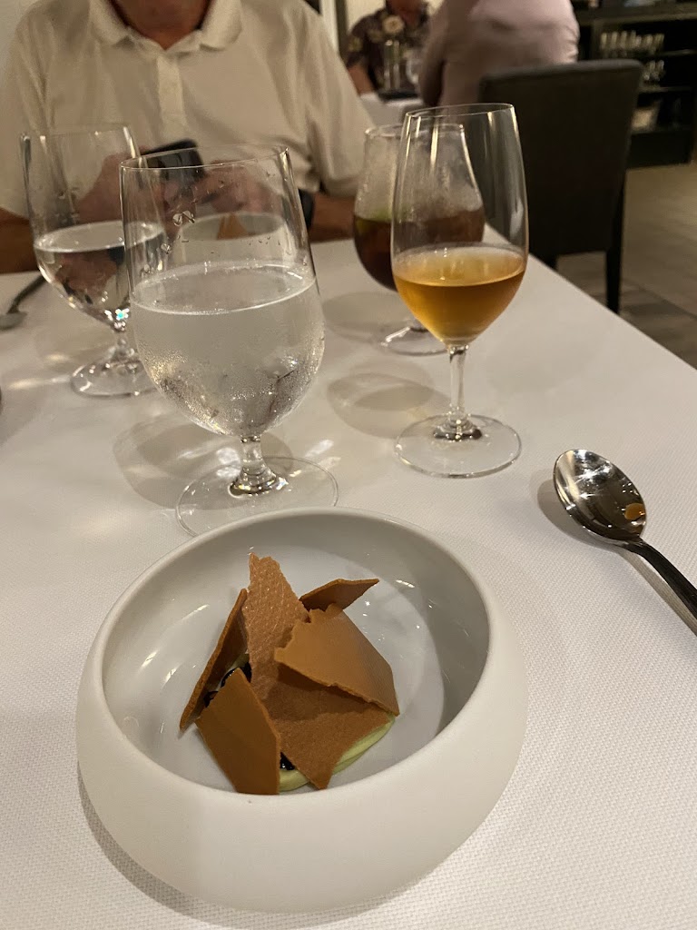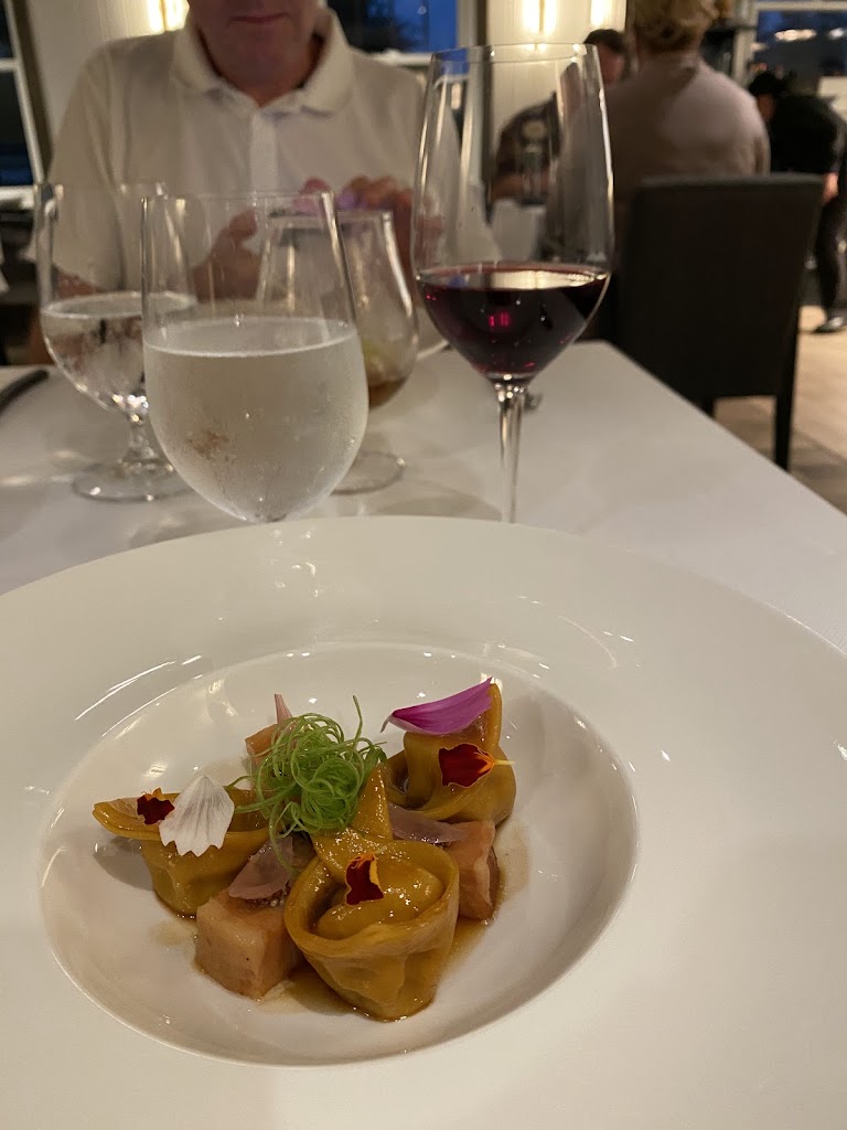 This was just a fabulous meal! The pork belly ravioli was just so amazing! I could have eaten a whole meal of it. Also enjoyed the Dorian. My husband who doesn’t eat seafood enjoyed it! And the two desserts were just luscious and perfect at the end of the meal. I also got the wine pairing… there were some pairings that were just spot on. Kudos to Chef Kim for combining a touch of Asian flair to some of the dishes and having a well connected 7 course meal!