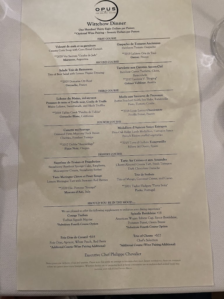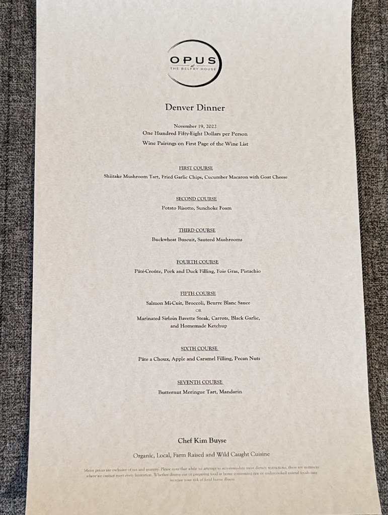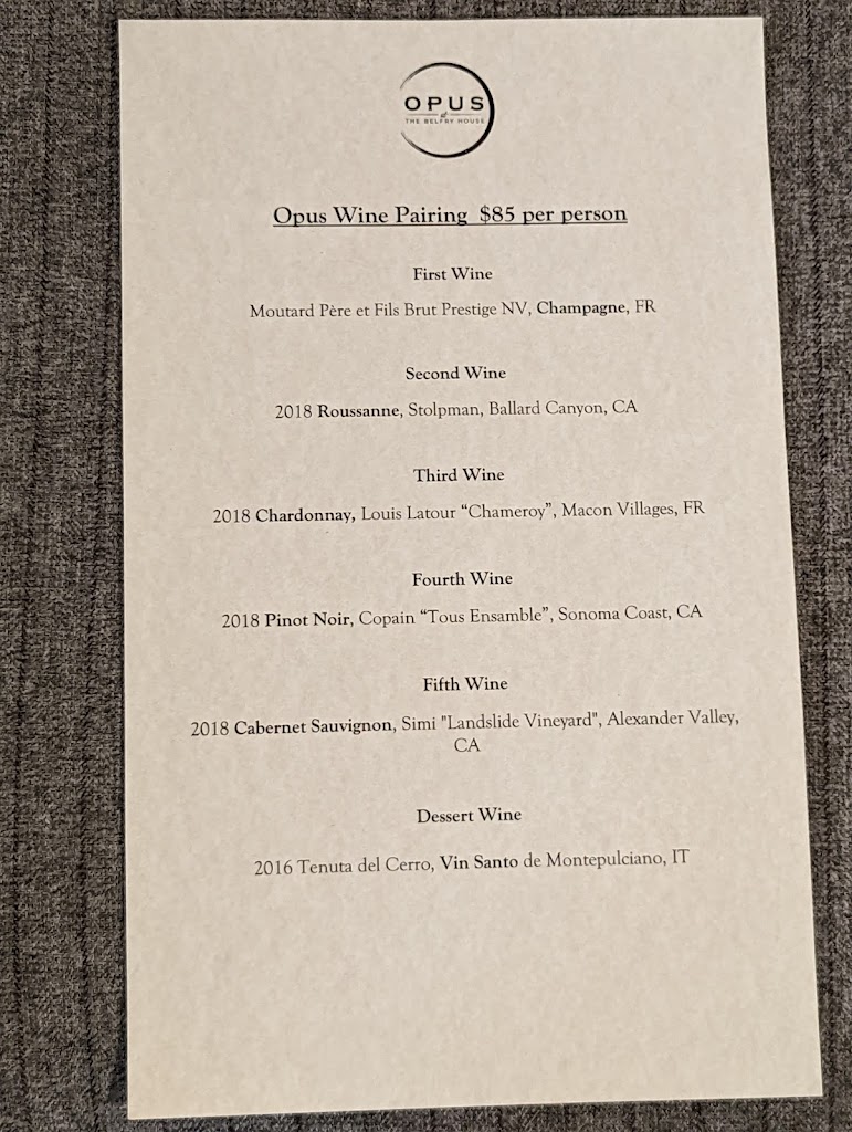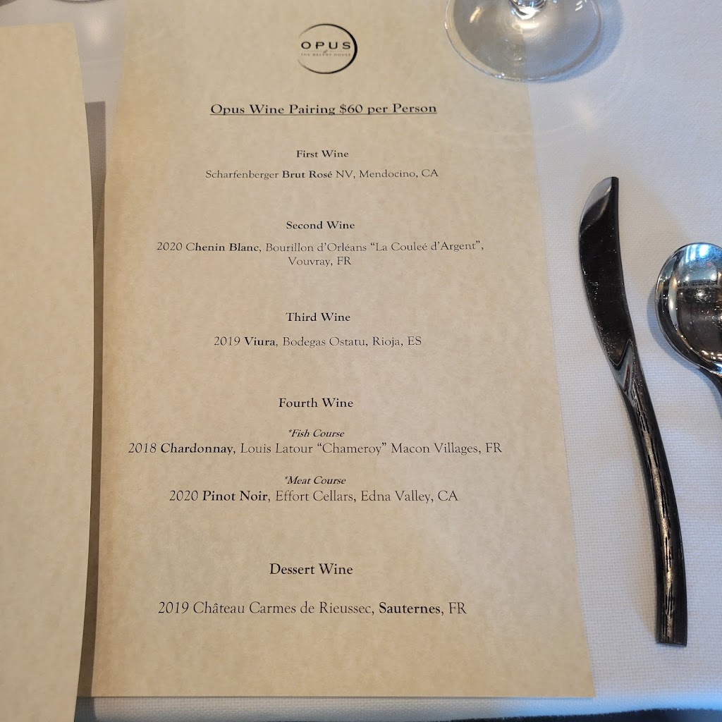 2/10/2023. Valentine's Day Dinner at Opus. 7 couse meal with 7 Wine pairings. Truly exquisite, an Immersive experience. Chef Kim created a spectacular, elegant dining experience that was unique, artistic and delicious. Initimate setting & decor. Great Service.
