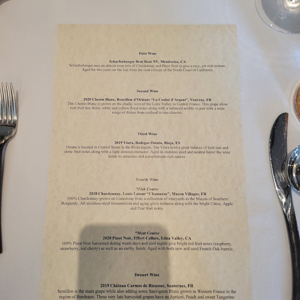 The sommelier was fantastic, as was our food sever. Both took the time to explain each offering, answered questions, and made recommendations. I would definitely encourage doing the wine pairing with the meal.