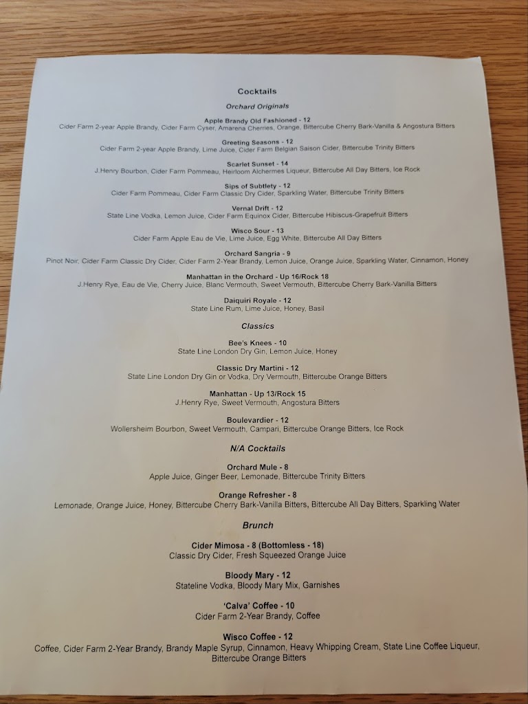Had Easter Sunday Brunch, the food was fantastic, service was really great, we never felt rushed or unattended. The Cider farm was a great place to hang out for a bit and socialize, they have kept that feel but in a sit down restaurant/bar. Highly recommend, Verona needed this!