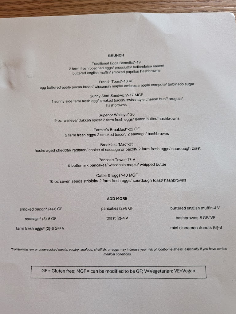 The food is outstanding!! I had the walleye with potatoes & 2 over easy eggs. It’s actually healthier & more delicious than most meals you can get anywhere else.