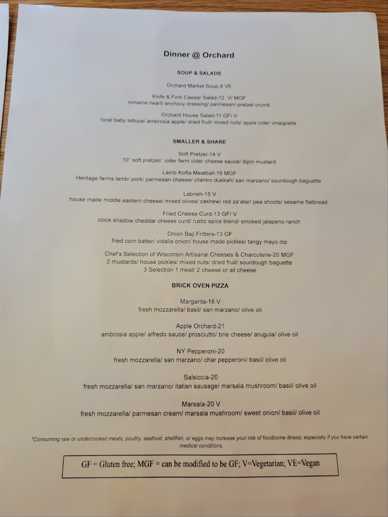 The Orchard is such a gem for Verona! The atmosphere is warm and welcoming, and the owner and staff couldn’t be nicer. It’s a great sit-down option for our community, and we’re lucky to have it.