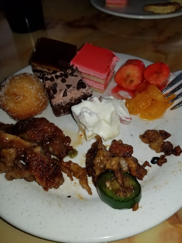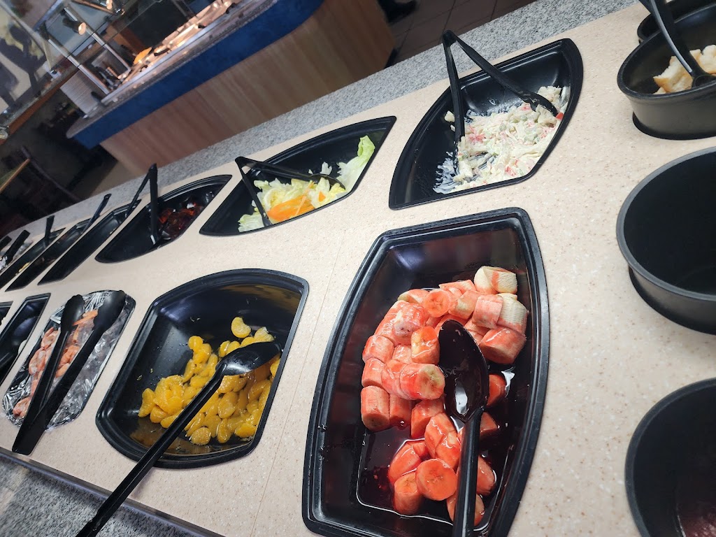 Pretty much what you'd expect from a Chinese Buffet. The Jalapeno Chicken and Peanut Chicken were good. The desserts were tasty especially the tiramisu and strawberry cakes. Bathroom was not the cleanest. Dirt smudged all over the outlet cover that looked as though it was on there for quite a while.