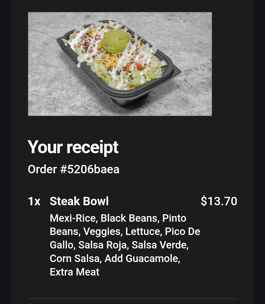 Was excited to see this type of restaurant open in town, but food was not good. Meat quality was terrible and everything lacked flavor. We got a steak bowl and a barbacoa bowl and we couldn’t even finish them as they weren’t good. So sad as we’d love to have a healthy quick-serve option nearby, but we won’t be back.