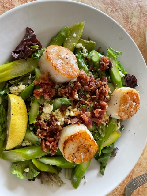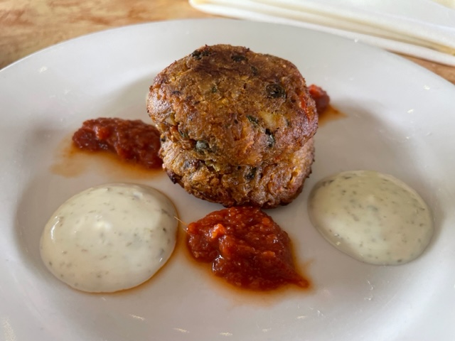 Had the crab cakes, which were very good, and the duck confit entree salad which was sublime - greens, feta, blackberries, apples, dressing and seasoning complementing so well, and a generous portion of duck cooked to crispy skin and tender lean meat perfection. The music was equally sublime!