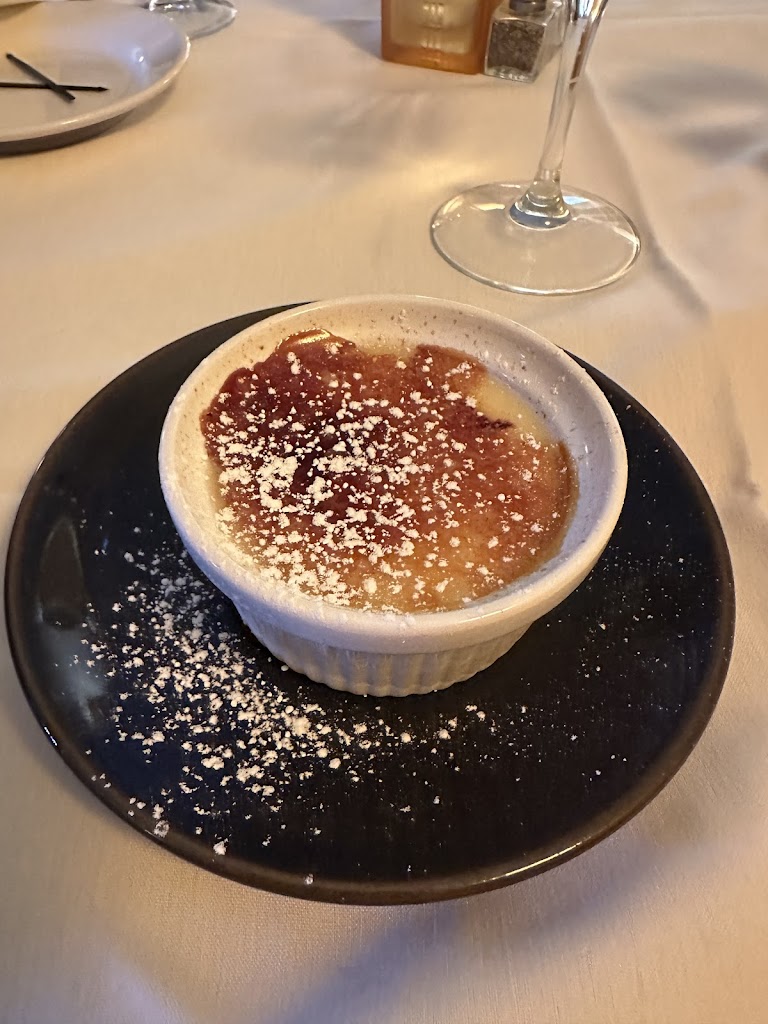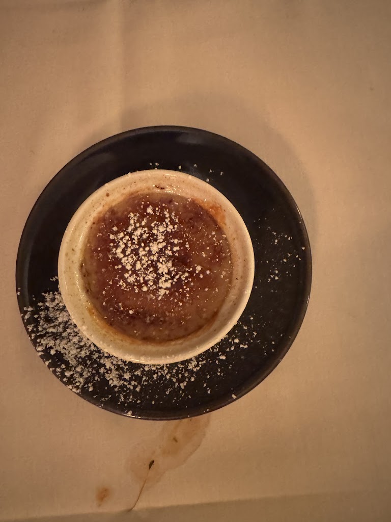 Ordered a couple appetizers and then creme brûlée for dessert! The dessert was very tasty and definitely took care of my craving for creme brûlée. It wasn't quite as creamy as I was hoping but still had great flavor and a lovely caramelized topping :)