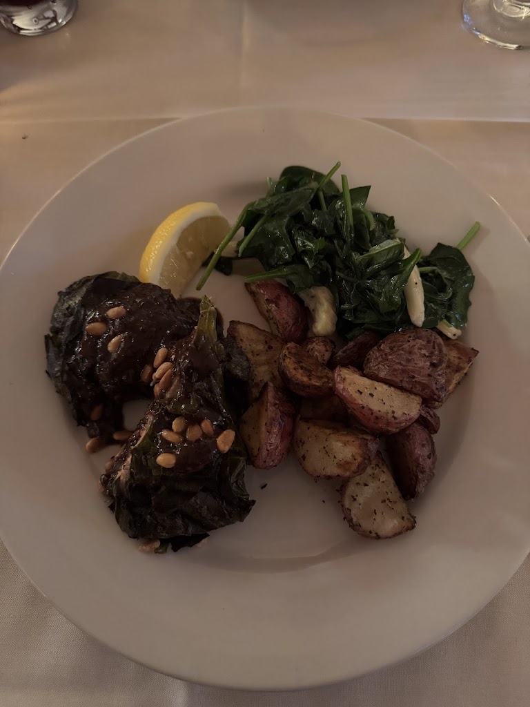 The salmon in grape leaves was good but lacked flavor. We had the bread pudding for dessert, which was free for our anniversary celebration. It was not a moist cake like a typical bread pudding, seemed more of dry sweet bread/biscuit with a glaze. The old farm house charm was nice. Staff were pleasant and met all our needs. But sadly, we went for the food and the dishes we had were definitely not worth the price. I don’t think we will be going back.
