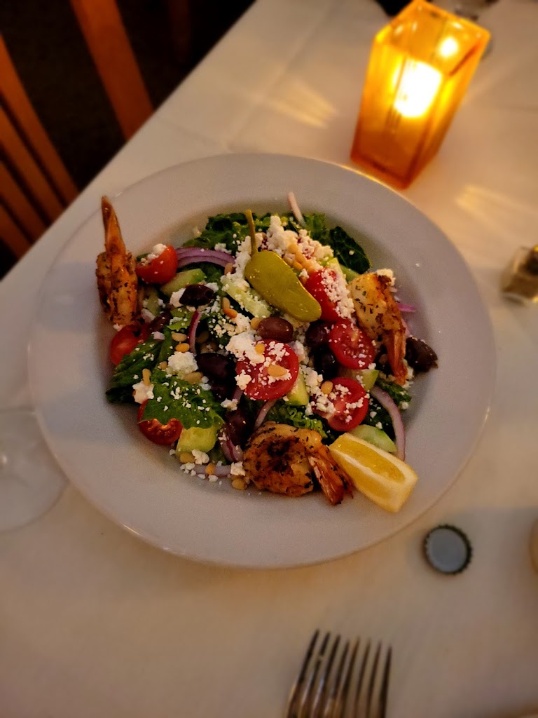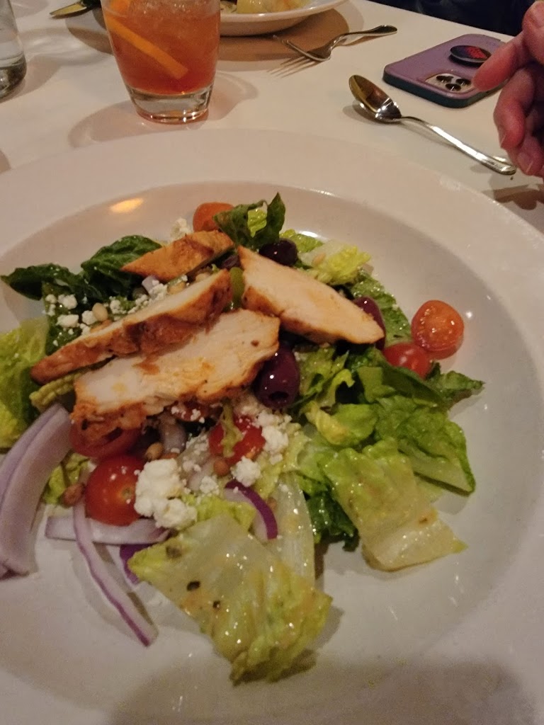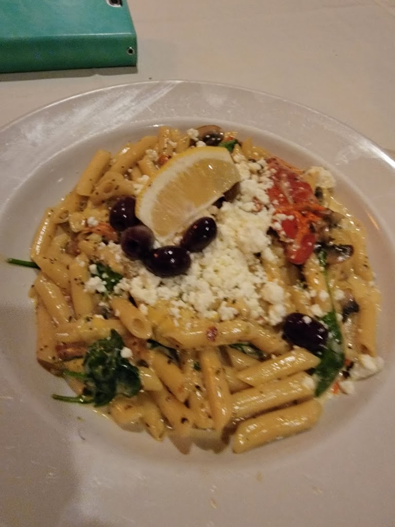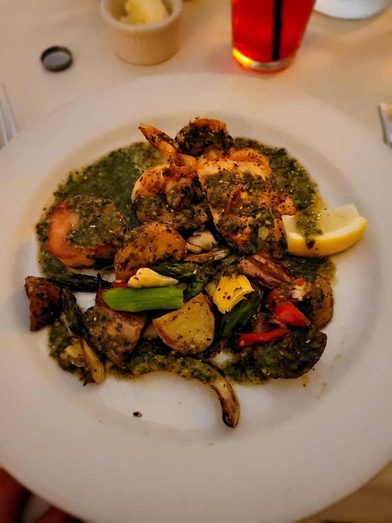 The spinach artichoke pasta with shrimp deserves special mention — it was absolutely phenomenal. The pasta was perfectly cooked, the sauce was rich and flavorful without being heavy, and the shrimp were tender and seasoned to perfection. It struck that perfect balance of comfort food and fine dining elegance.